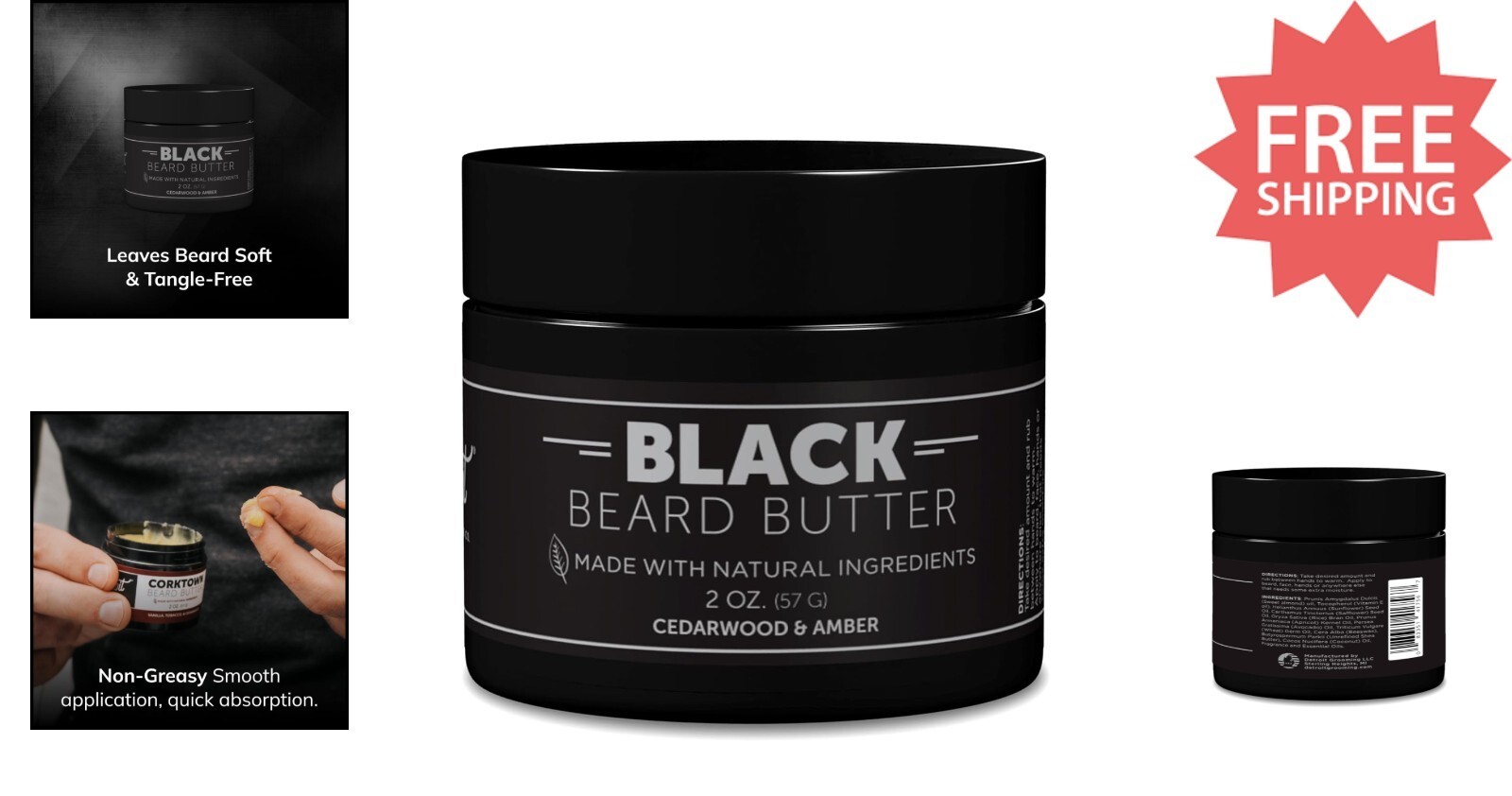 Experience beard care with our Rich Conditioning Hydration Beard Butter, infused with nourishing safflower oil and shea butter for long-lasting moisture. This formula softens, smooths, and alleviates itchiness, ensuring a comfortable grooming experience. It promotes a thicker, healthier beard by strengthening hair and reducing breakage and dryness. Effortlessly tame flyaways and achieve a natural hold for a polished look. Fragranced with a sophisticated black scent?an alluring blend of amber, cedarwood, and subtle sweetness?this beard butter adds a bold, masculine touch. Crafted in Detroit with meticulous attention to quality, our grooming products embody superior craftsmanship and ingredients for lasting excellence.