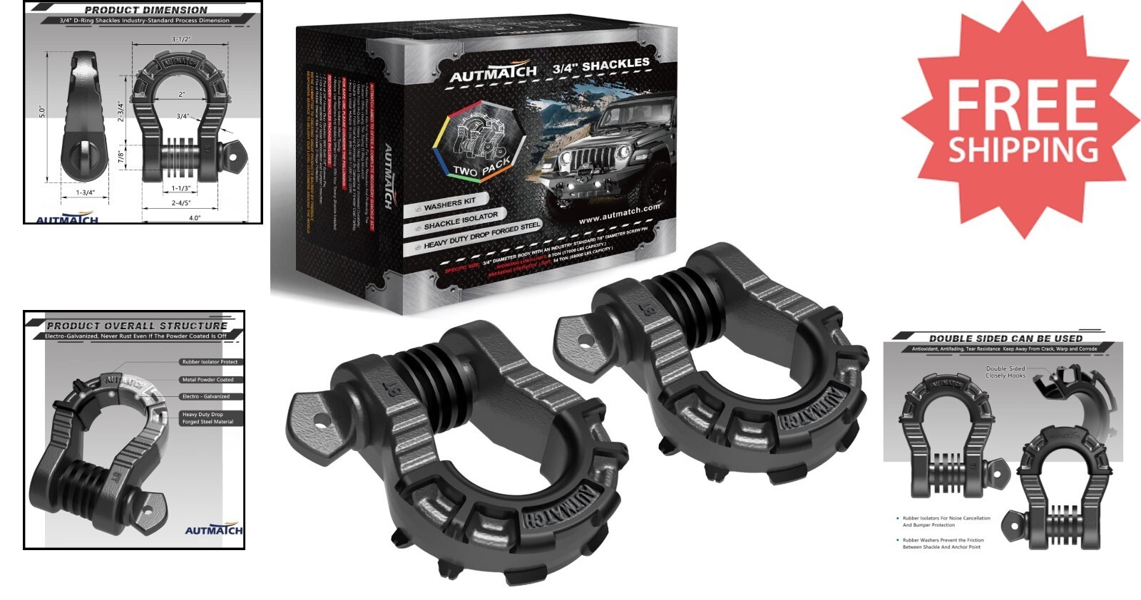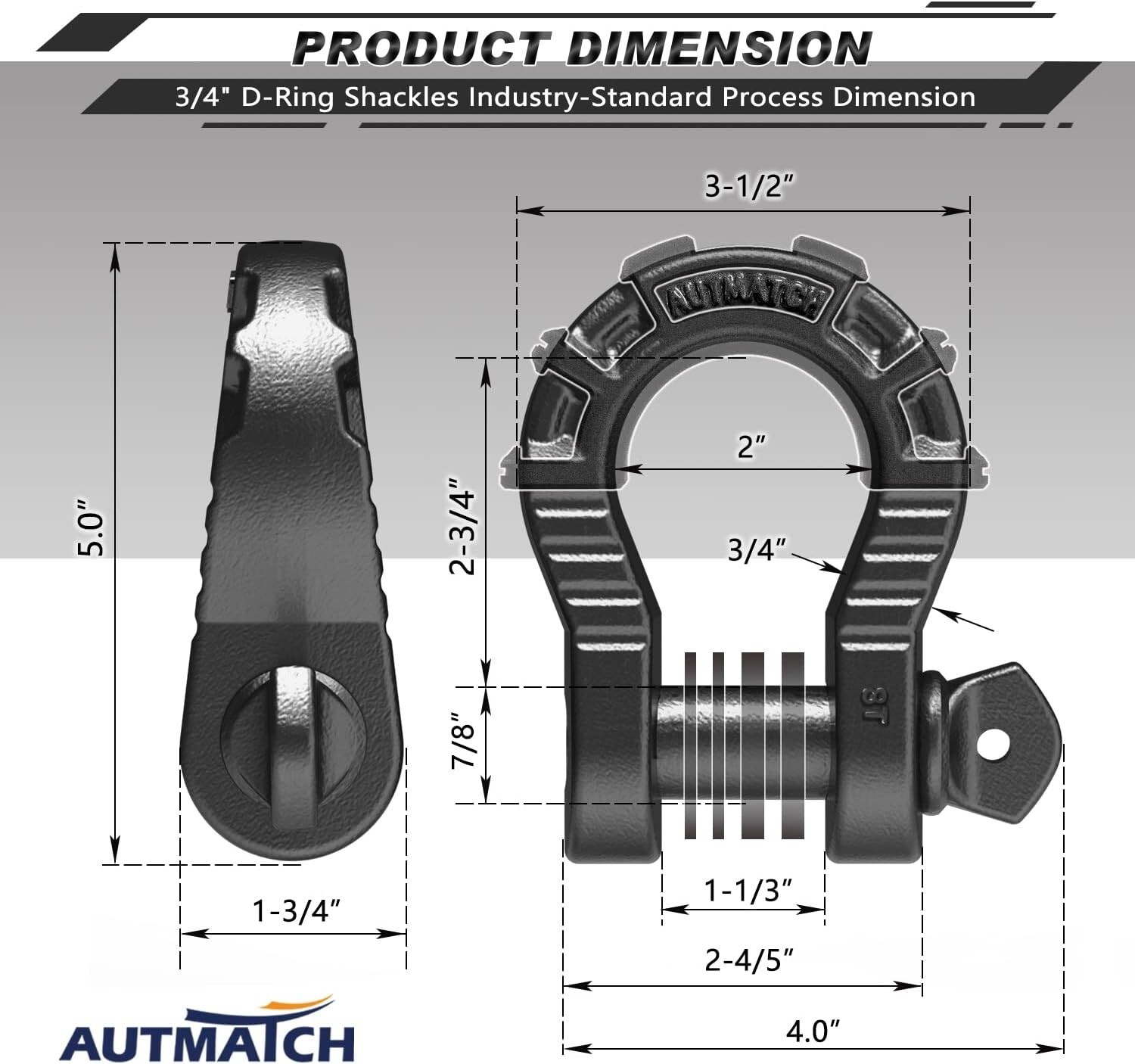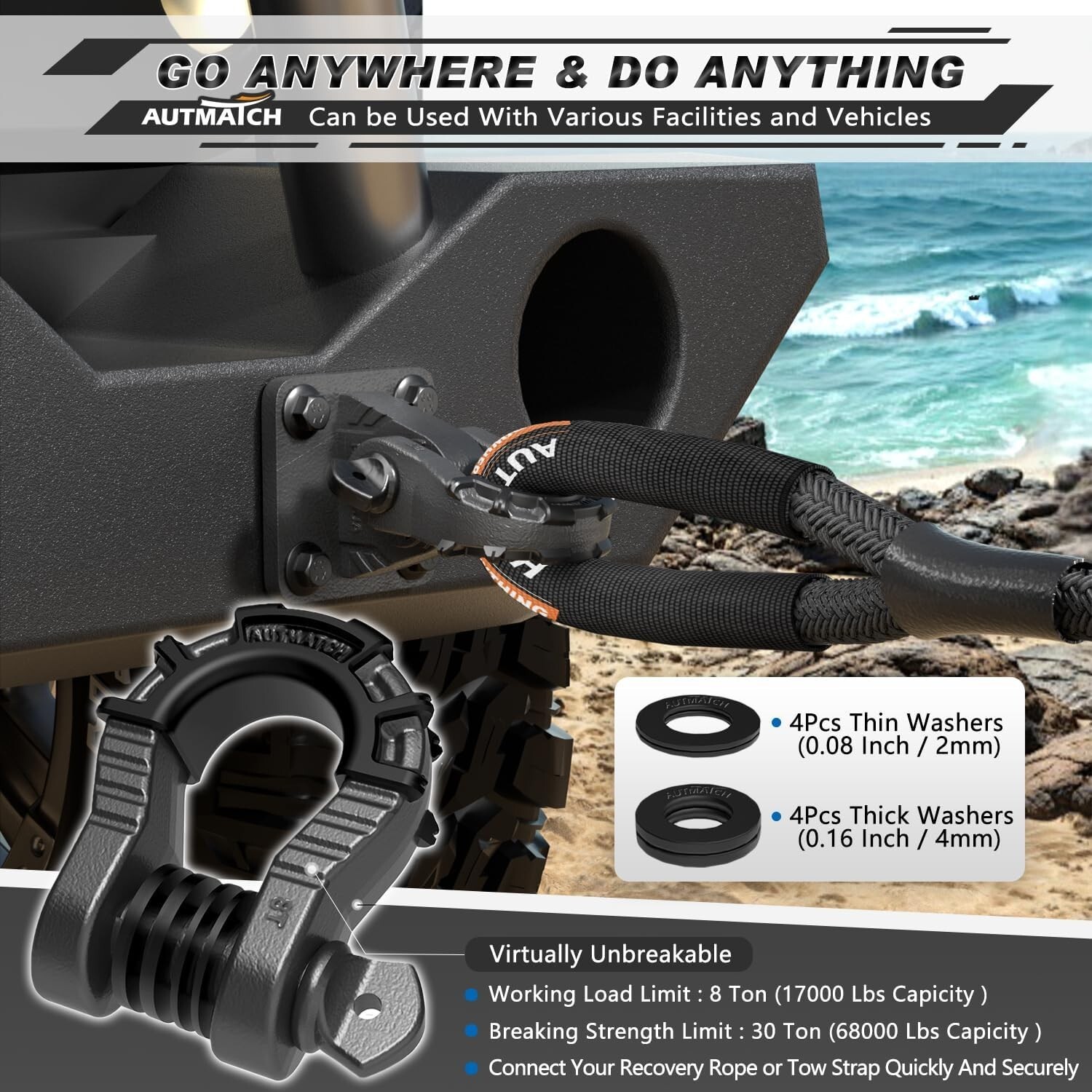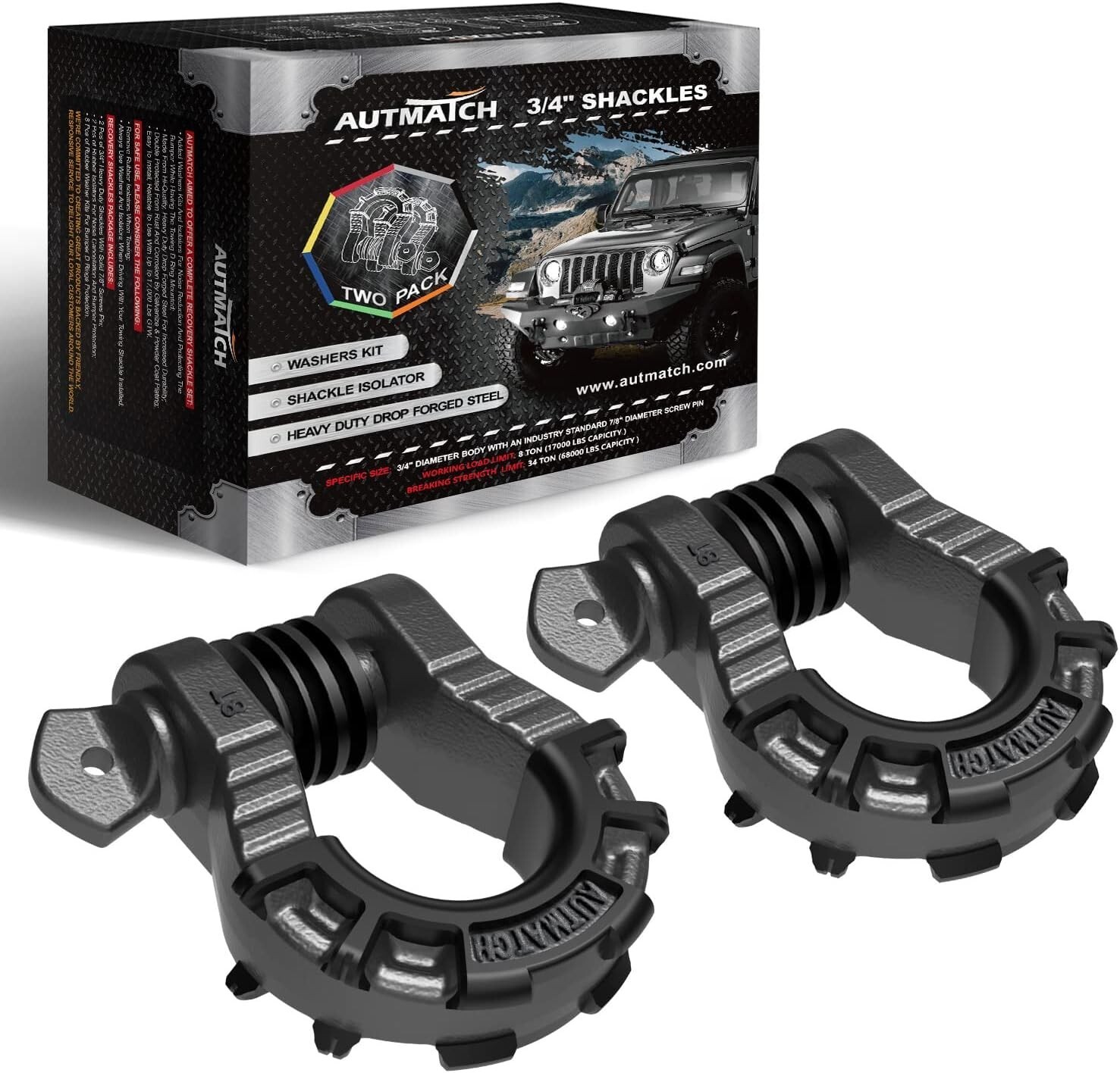 Ultra-Strong 3/4-Inch Mega Shackle Set with 68,000Lbs Break Strength for Towing