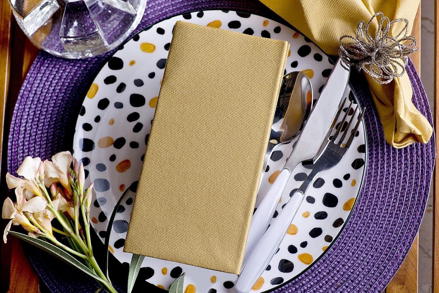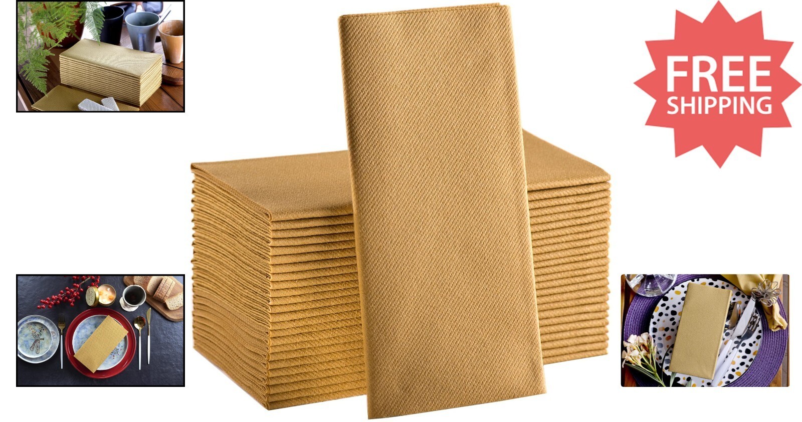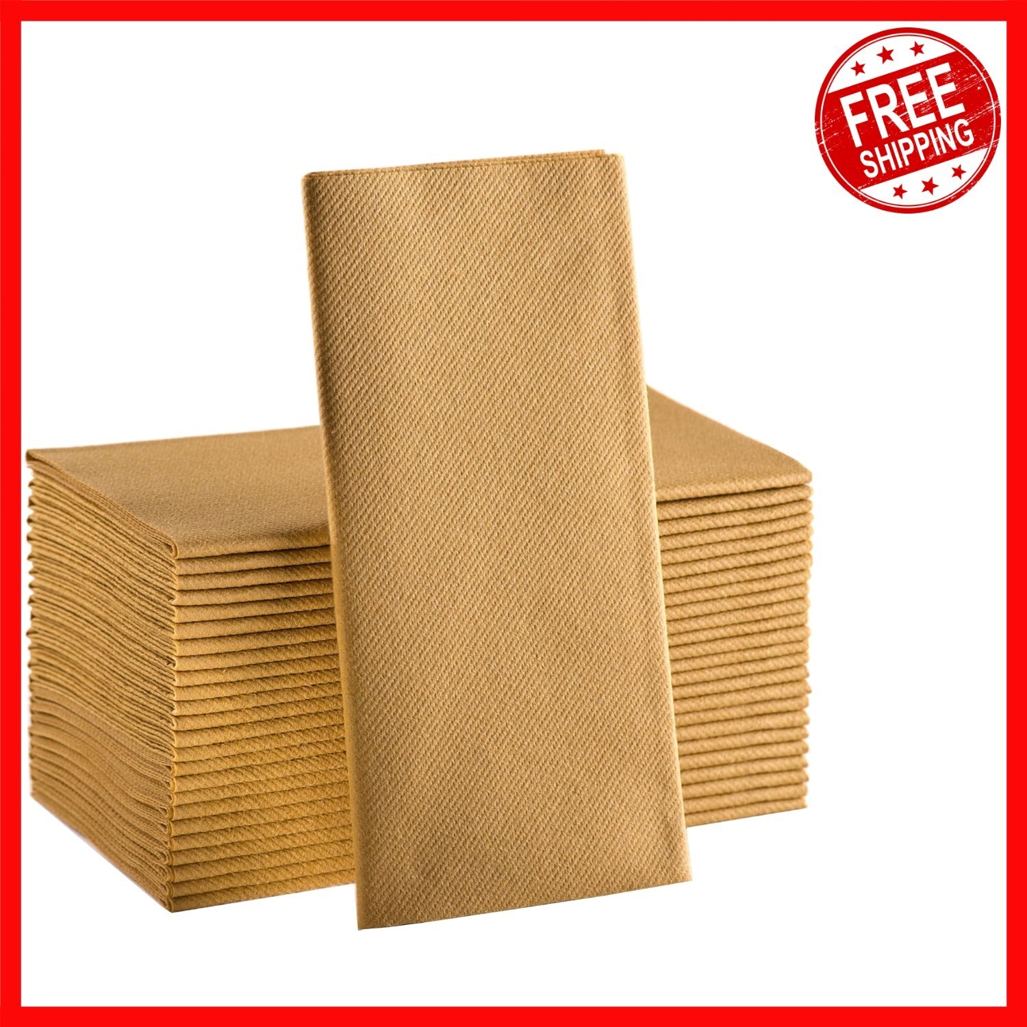 Luxury Gold Linen-Like Disposable Hand Towels, 50 Pack for Parties & Weddings