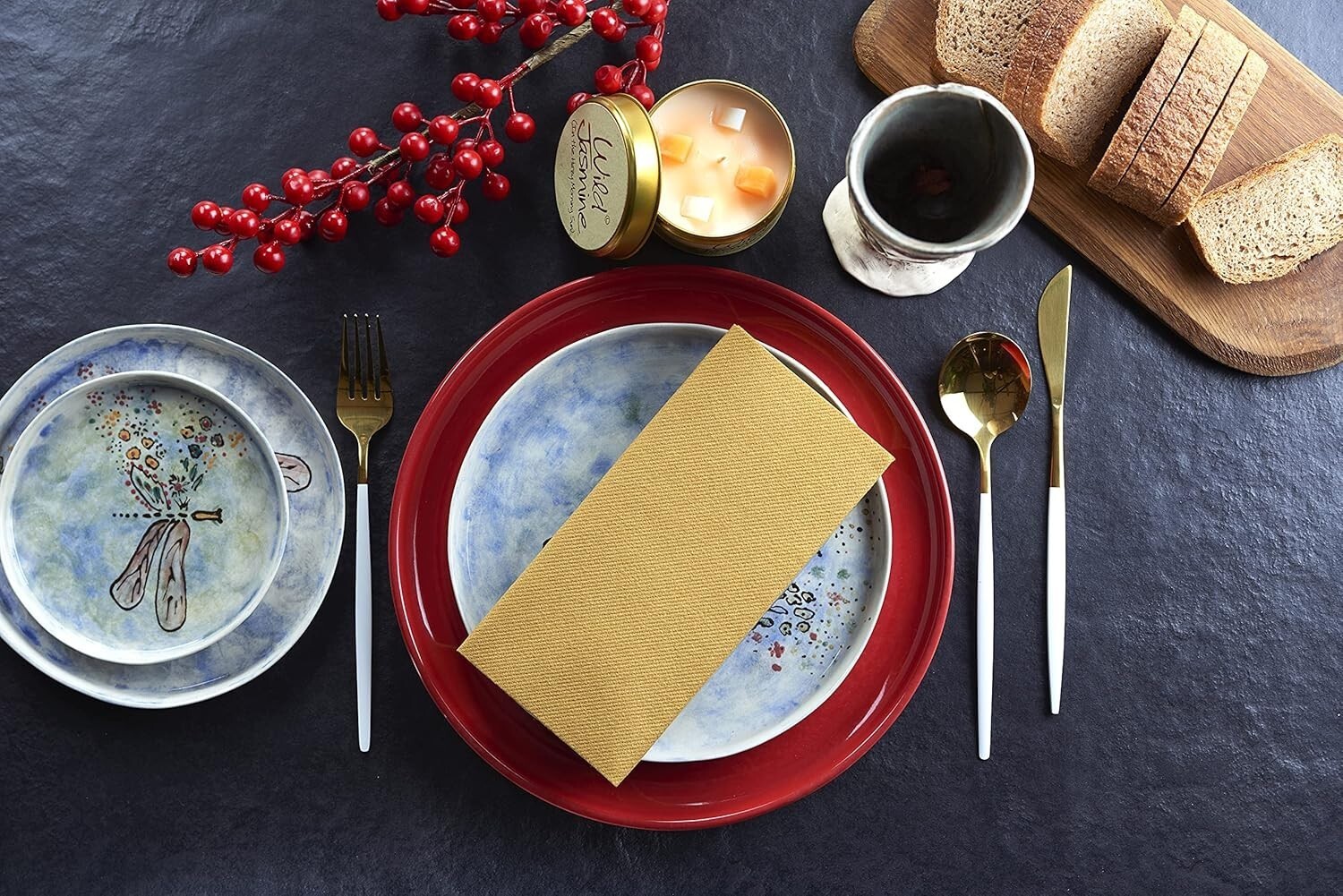 Experience the perfect blend of luxury, hygiene, and durability with Moyes Home Air Laid Gold Hand Towels. Crafted from reinforced, cloth-like paper, these napkins offer superior thickness, softness, and absorbency, elevating any dining setting?be it everyday meals or special celebrations. Designed to resemble linen in feel and look, they are both elegant and hygienic, made from breathable, sterilizable paper that?s gentle on the skin. Their tear-resistant construction ensures strength and durability, absorbing up to six times their weight in liquids. The 16" x 16" size, foldable for convenience, includes a built-in pocket for flatware, making them versatile for any event or household need. Choose Moyes Home Air Laid Gold for a sophisticated, eco-friendly, and reliable dining accessory.