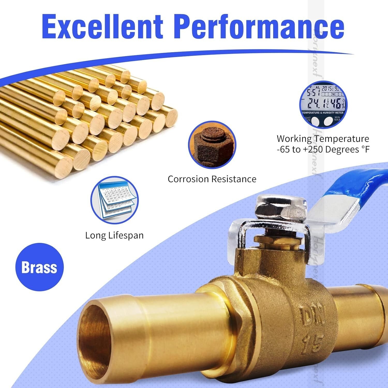 Heavy-Duty Brass 3/4 Inch Barb Ball Valve Set for Irrigation Plumbing (2 PCS)