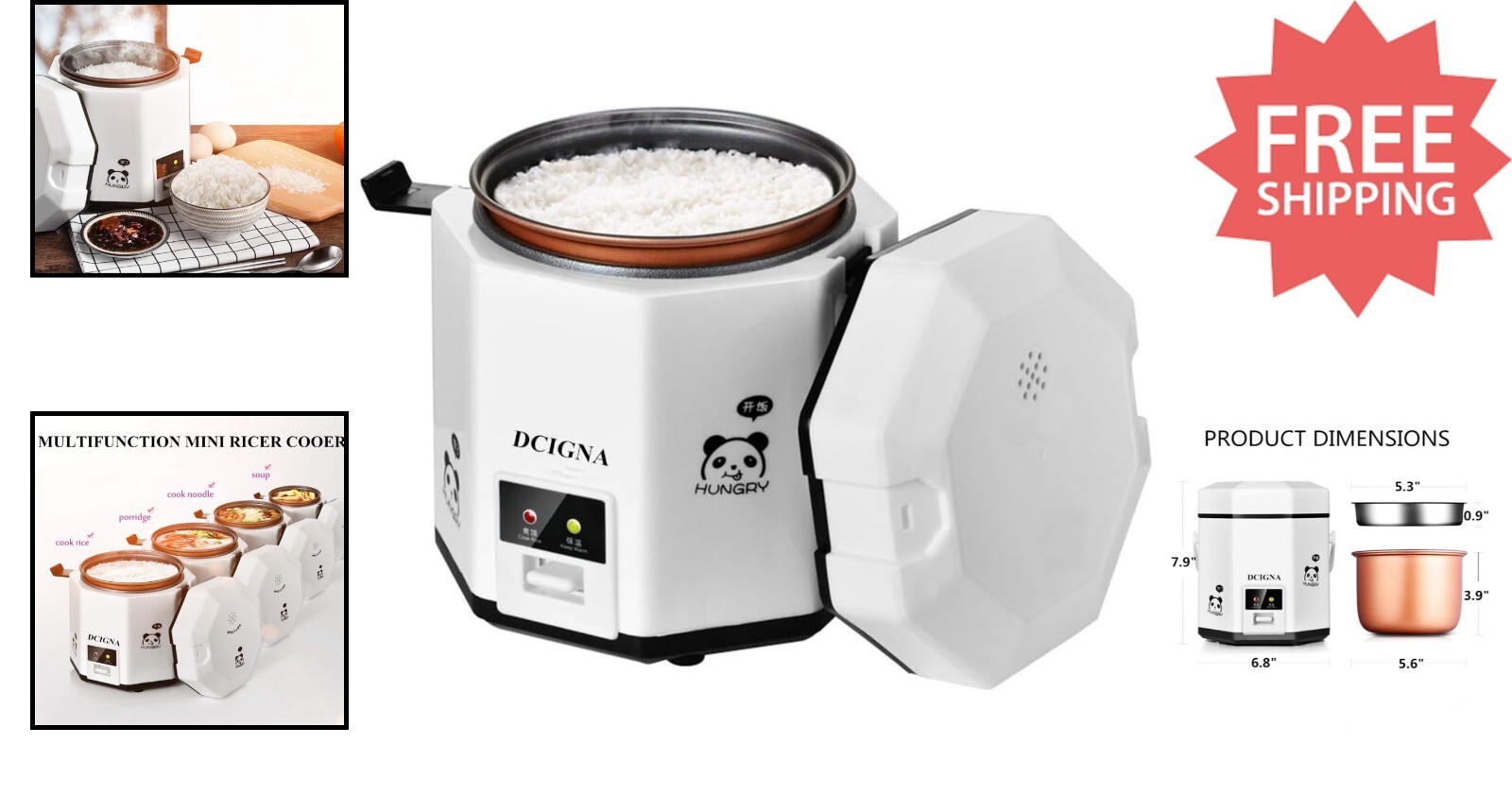 Its portable and lightweight design, complete with a comfortable handle, makes it perfect for small kitchens, college dorms, or travel in an RV or camper. The package includes a rice paddle, steaming pan, measuring cup, and removable PFOA-free nonstick pot. Backed by a 30-day and 24-hour customer service, this mini cooker is your all-in-one solution for quick, healthy meals anywhere.