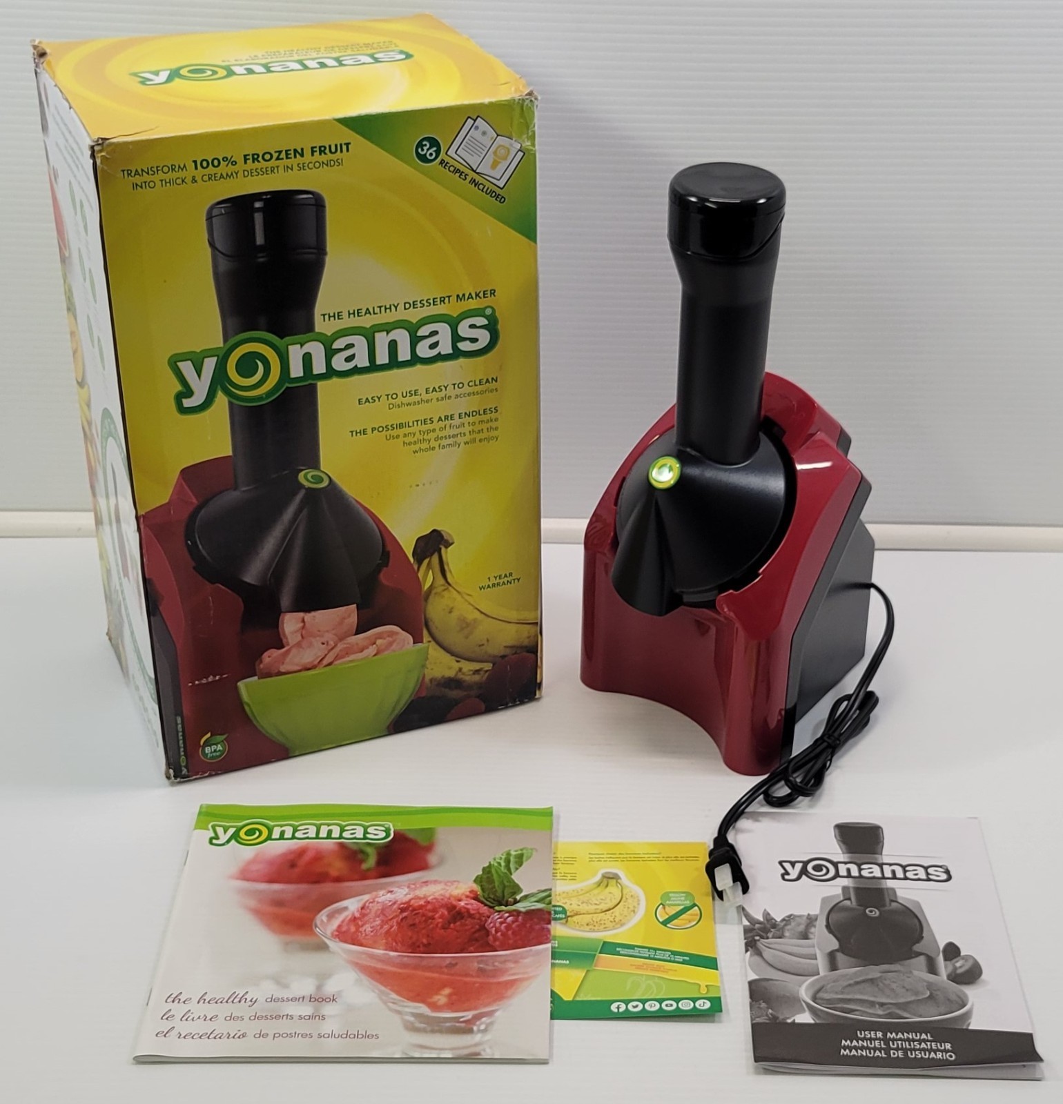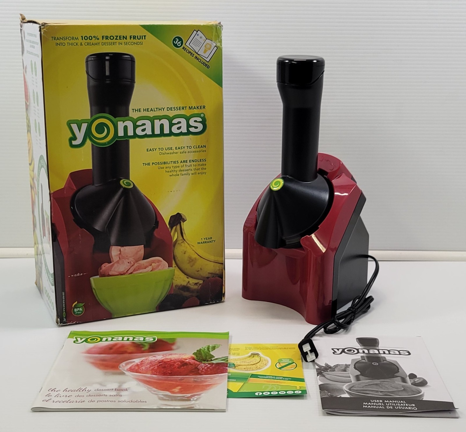 Yonanas Frozen Fruit Dessert Maker Red Kitchen Party Yogurt Appliance