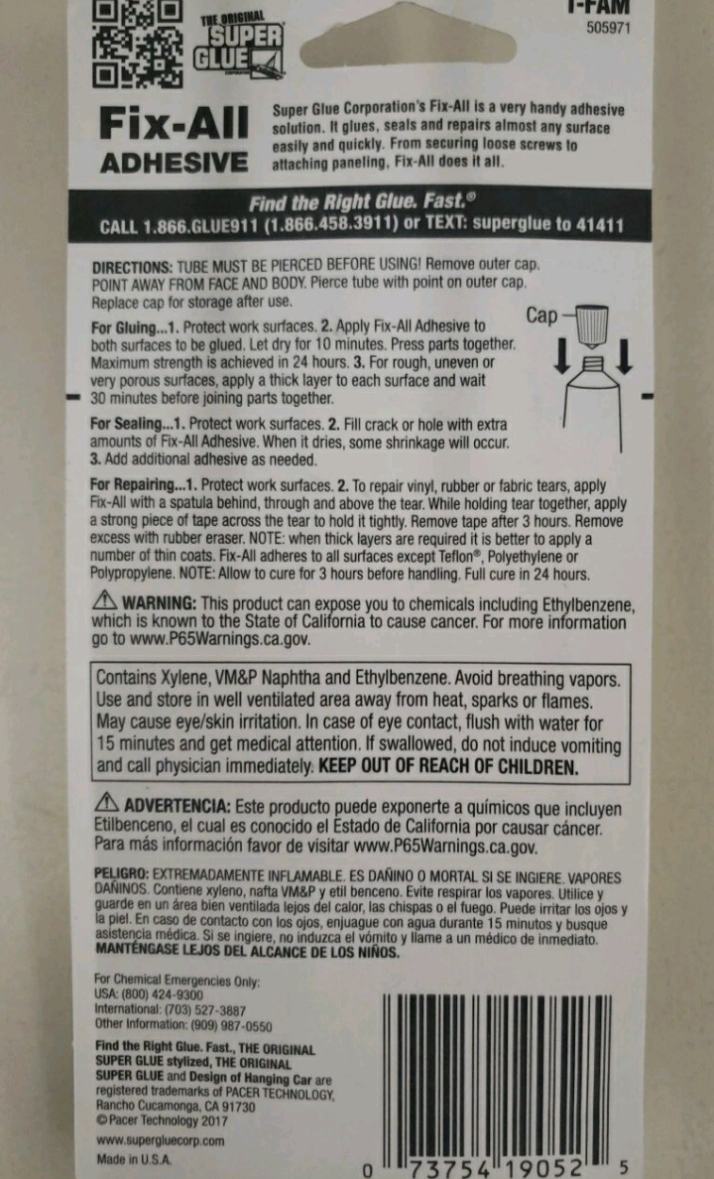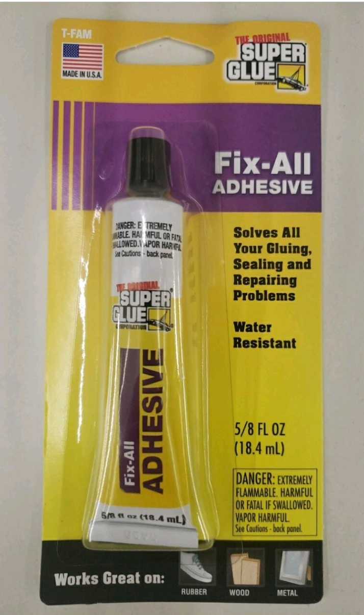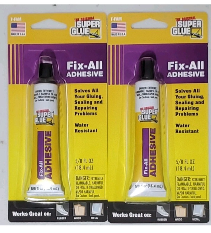 SET OF 2 Super Glue Fix-All Adhesive 5/8oz (18.4ml) Tube Water Resistant