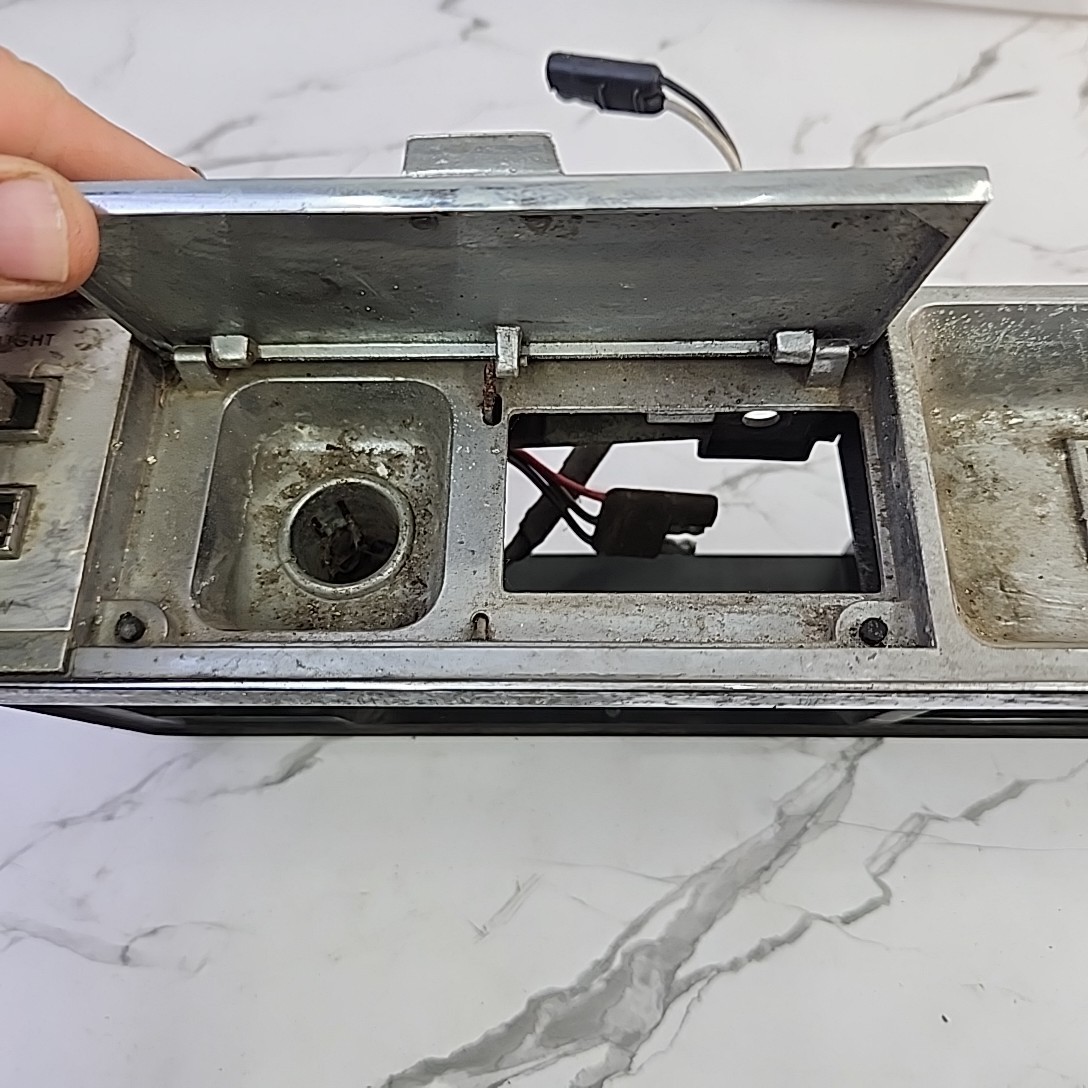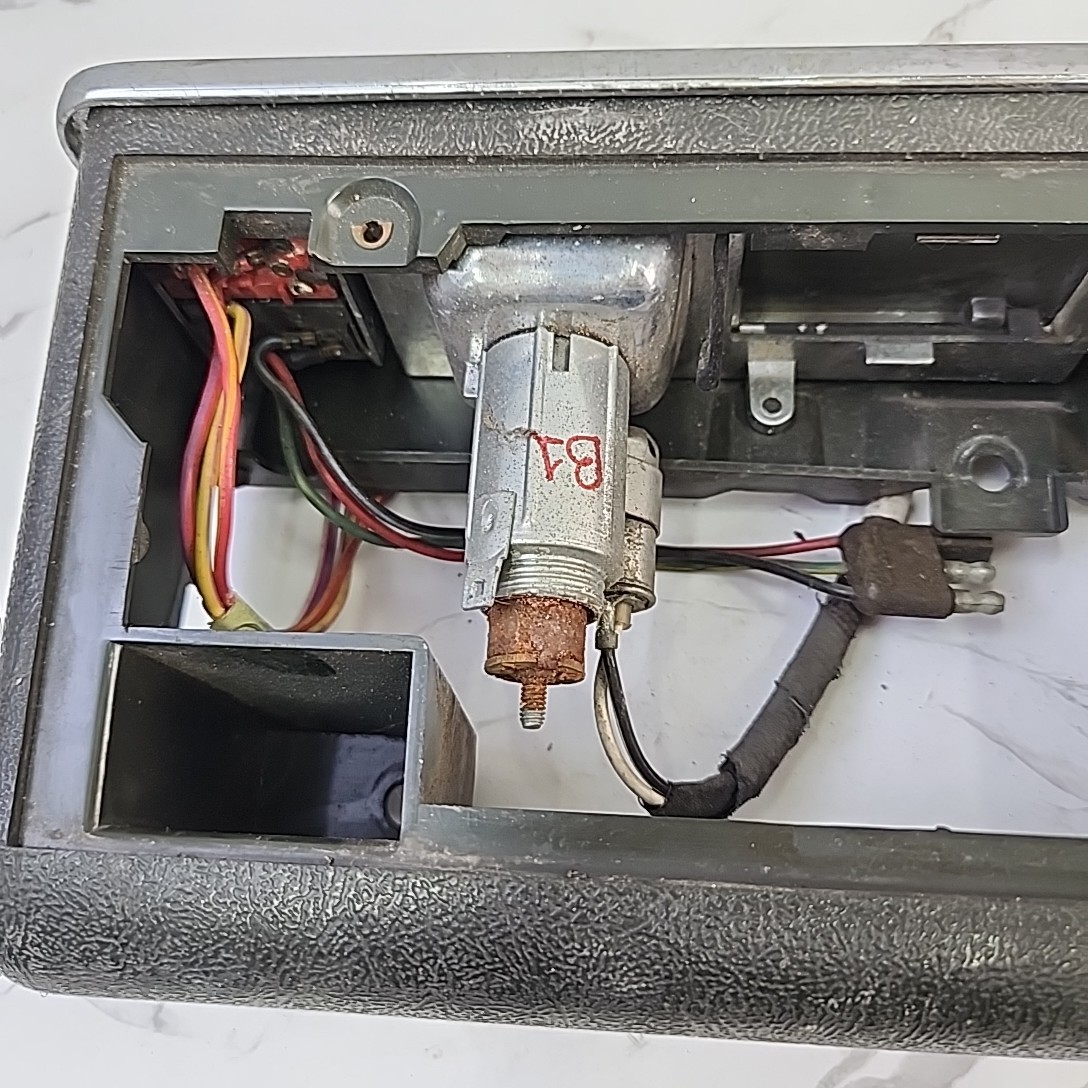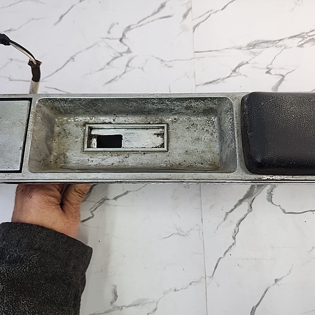 Exact item is shown. This is being sold for repair / parts / as is. Moderate pitting on chrome. Arm rest pad has a crack. Includes the wiring shown. Arm rest plastic has a crack under the ash tray. Item dimensions approximately 24 x 6 x 3 inches, weight 4.2 lbs. Made in USA. Please review our business policies in our store for information regarding returns, shipping and warranties.