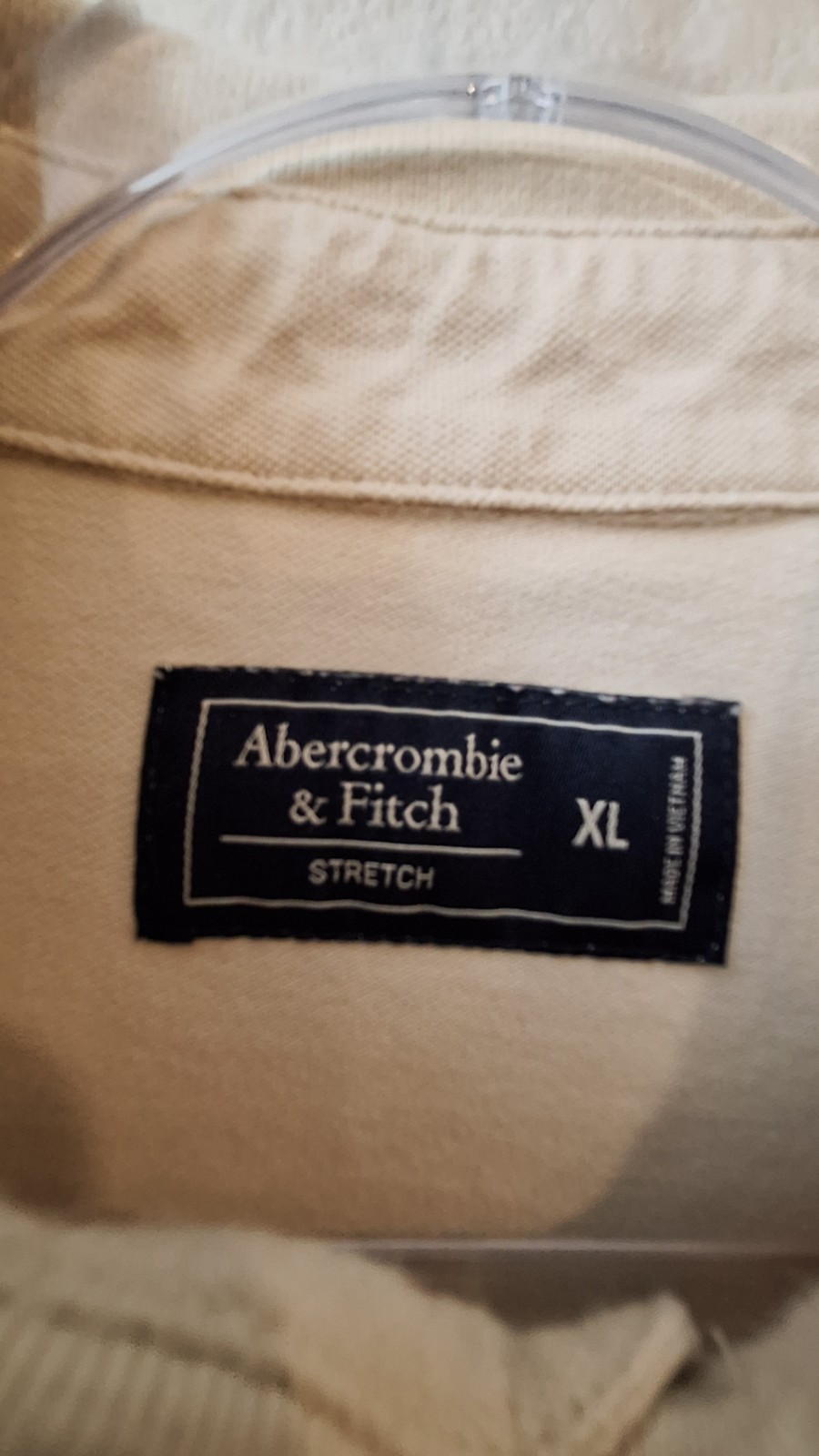 Abercrombie & Fitch Stretch Polo Shirt Mens XL Lt Beige Moose Logo Short Sleeve