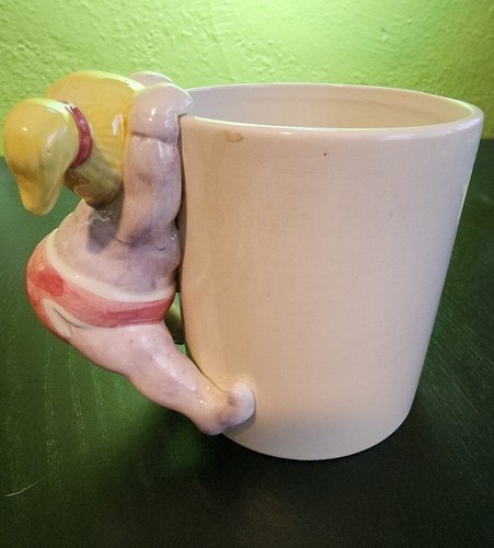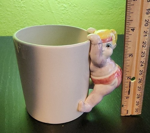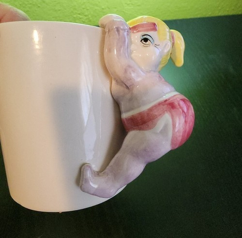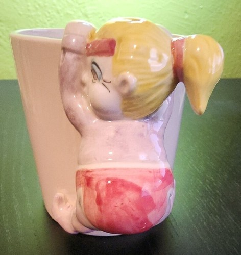 Vintage 1990s Fitz Floyd Omnibus Japan Chubby Mug Girl Woman Pink