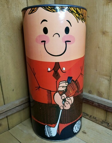 RARE VTG 1972 People Products Div Golfer Trash Garbage Can Waist Basket 16x7.5"