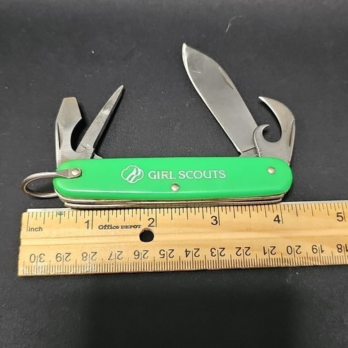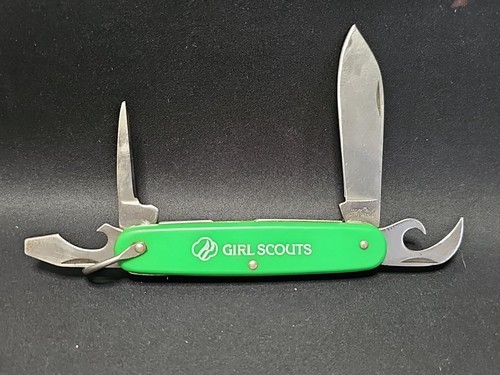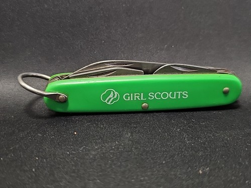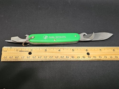 UP FOR SALE: Imperial PROV RI Official Girl Scouts Green Handle Pocket Knife Multi Tool Vintage 1980s