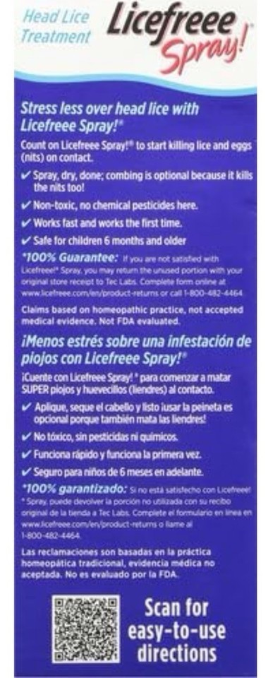 Licefreee Spray Non-Toxic Kills Super Lice And Eggs 6 fl oz WORKS !!!