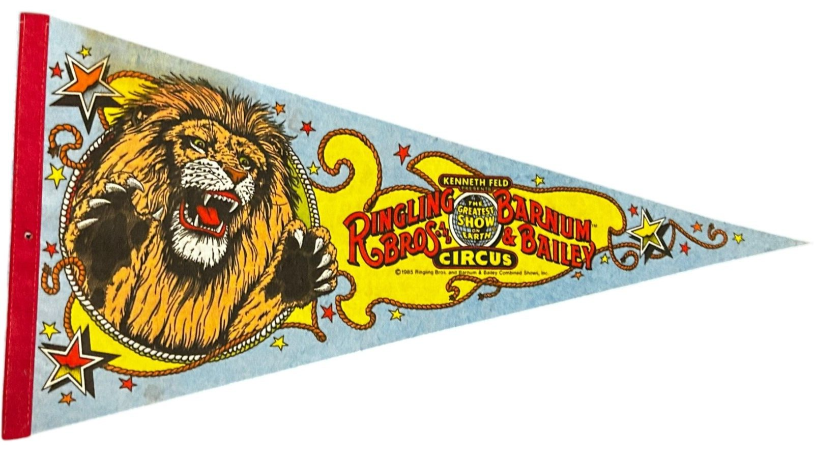 Vintage 1985 Ringling Bros Barnum Bailey Circus Pennant Flag Kenneth Feld
