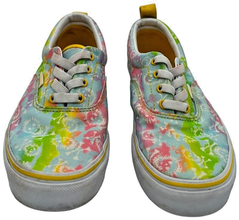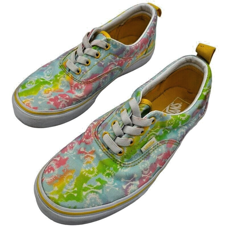 vans era girls size 5 shoes elastic lace skulls bones cyber tie dye yellow pink