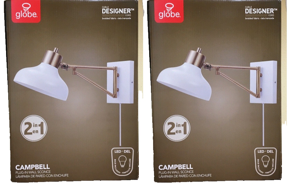 Globe Electric 51868 Berkeley - Wall Sconce 1-Light White Polished Brass (2-BOXES)