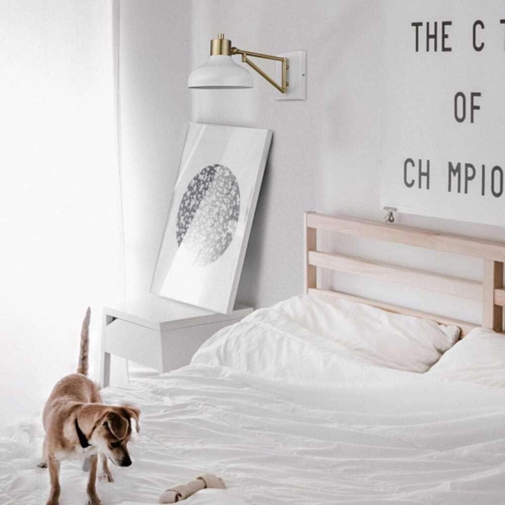 The Globe Electric 51868 Berkeley 1-Light Polished Brass Wall Sconce offers a chic farmhouse style with a minimalist design, perfect for any contemporary or transitional space. This wall sconce features a polished brass finish and a sleek, curved arm that provides both functionality and style. Its wide-brimmed, tilting shade can be adjusted to direct light in various directions, making it ideal for task lighting in bedrooms, living rooms, or hallways.