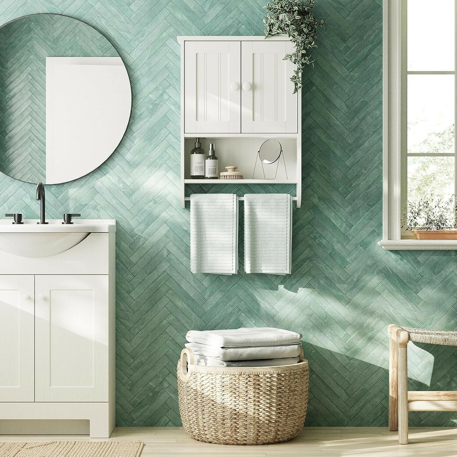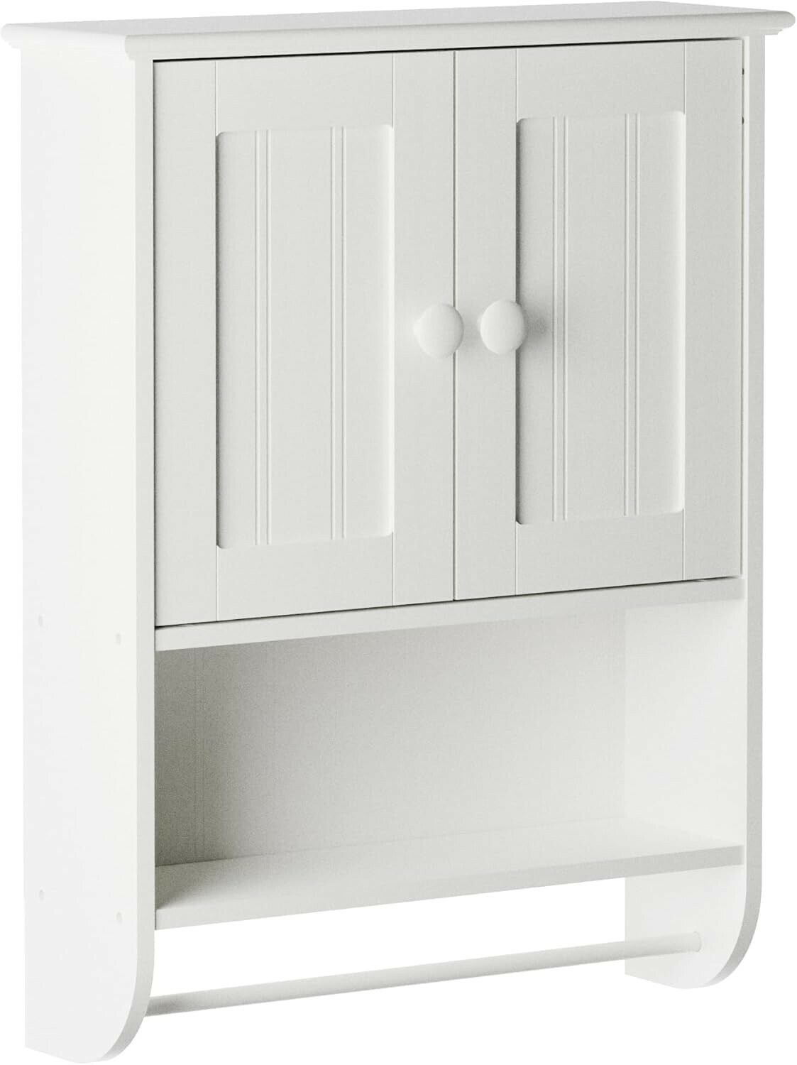 The Zenith 9114W Wall Cabinet is the perfect solution for organizing bathroom essentials in spaces with limited floor space. Featuring both open and hidden storage, this stylish and functional cabinet is ideal for storing toiletries, bath accessories, and towels. The hidden storage is concealed behind two doors with matching white door pulls, while the open area offers additional space for displaying decorative items. The full-length towel bar provides convenient hanging space for towels. With its white finish and bead board style, the cabinet blends seamlessly with most bathroom decor. The easy-to-assemble design and included wall-mounting hardware make installation simple.