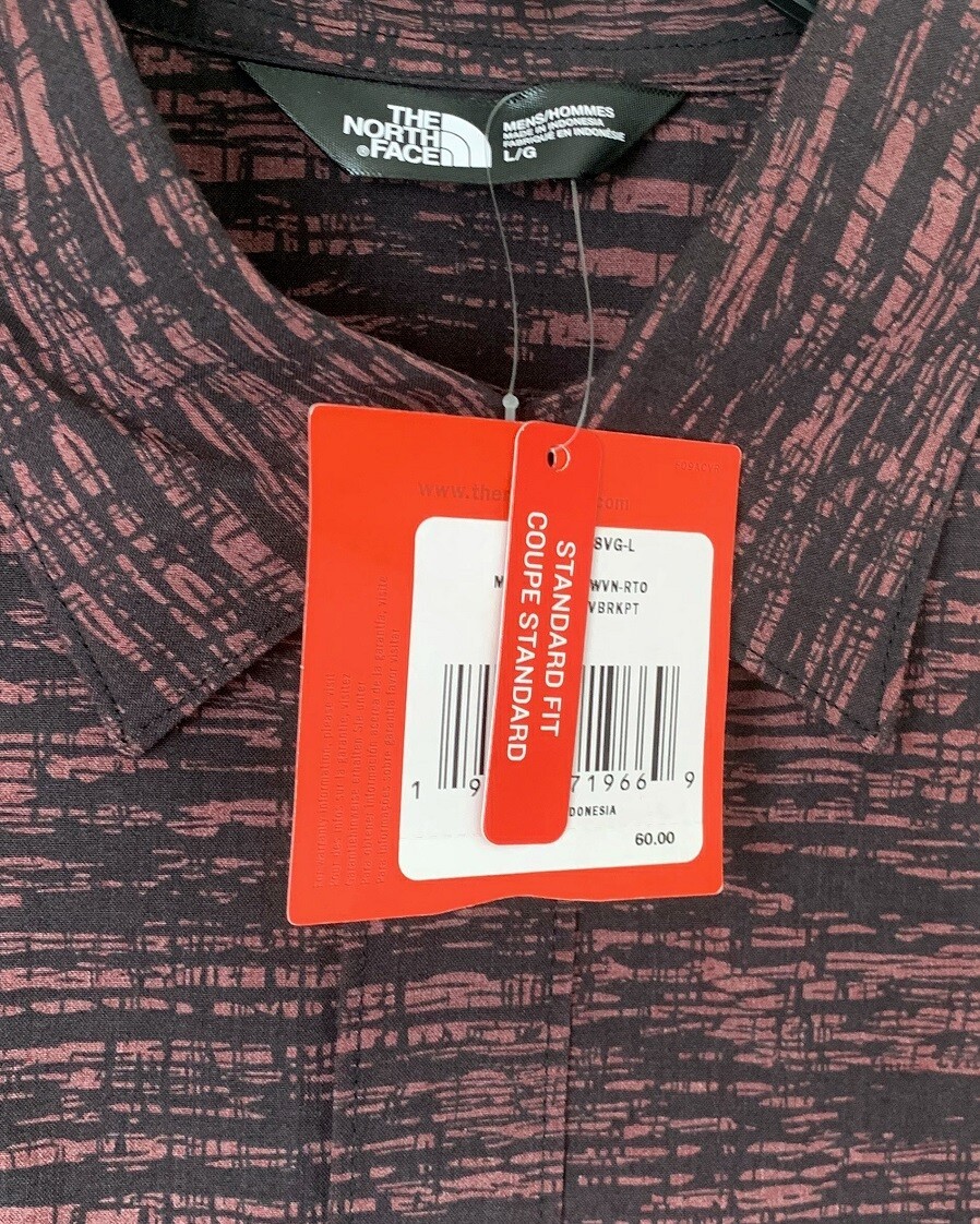The North Face Men's Long Sleeve Slate Woven Retro Button Front Shirt Burgundy S