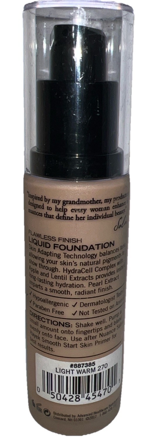 1- NUANCE Salma Hayek Flawless Finish Liquid Foundation #270 LIGHT WARM See Pics.