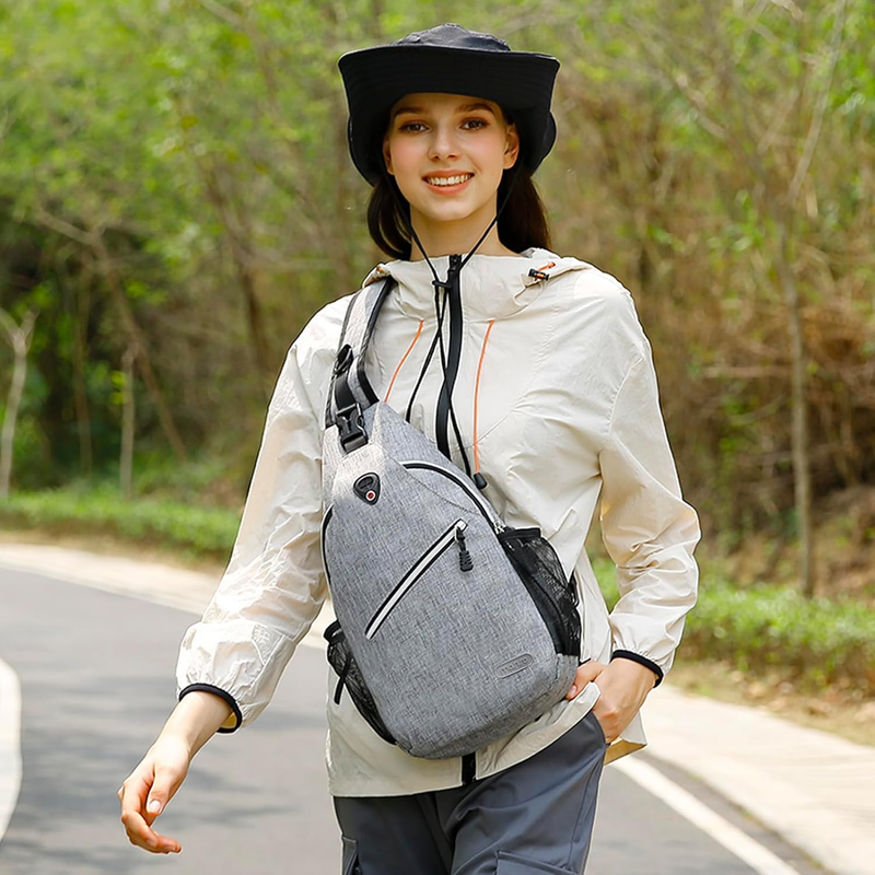This sling bag is suitable for women men, suitable for outdoor sports (hiking, cycling, biking, walking, running, camping, climbing), office and business.