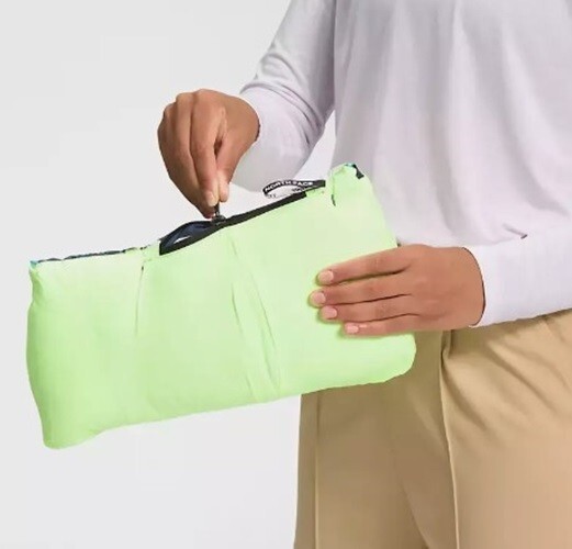 Jacket stows in right hand pocket