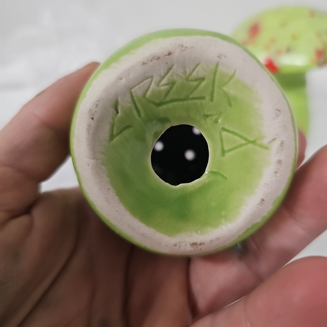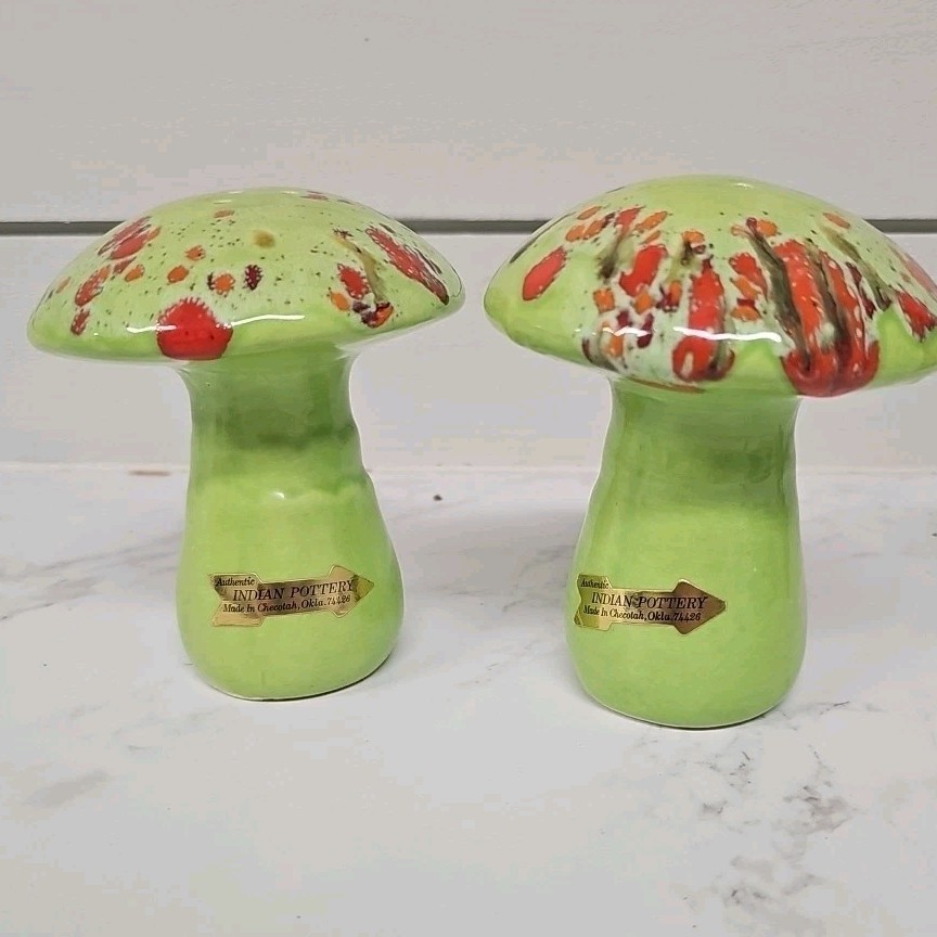 VTG MCM Ceramic Mushroom Salt And Pepper Shakers Drip Glazed Indian Pottery