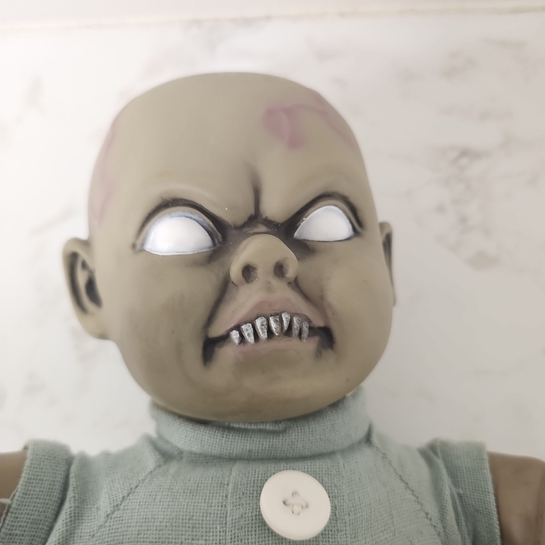 The Spirit Halloween The Wiggler Zombie Demon Baby is a retired animated collectible prop perfect for Halloween enthusiasts. This creepy and fun addition to any Halloween decor will surely bring a spooky vibe to any gathering or display. With its tested functionality, this undead baby will surely entertain and terrify guests alike.