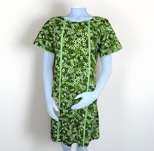 Vtg Dianes Honolulu Hawaiian Dress Womens Small Green Floral Short Sleeve 60s 70