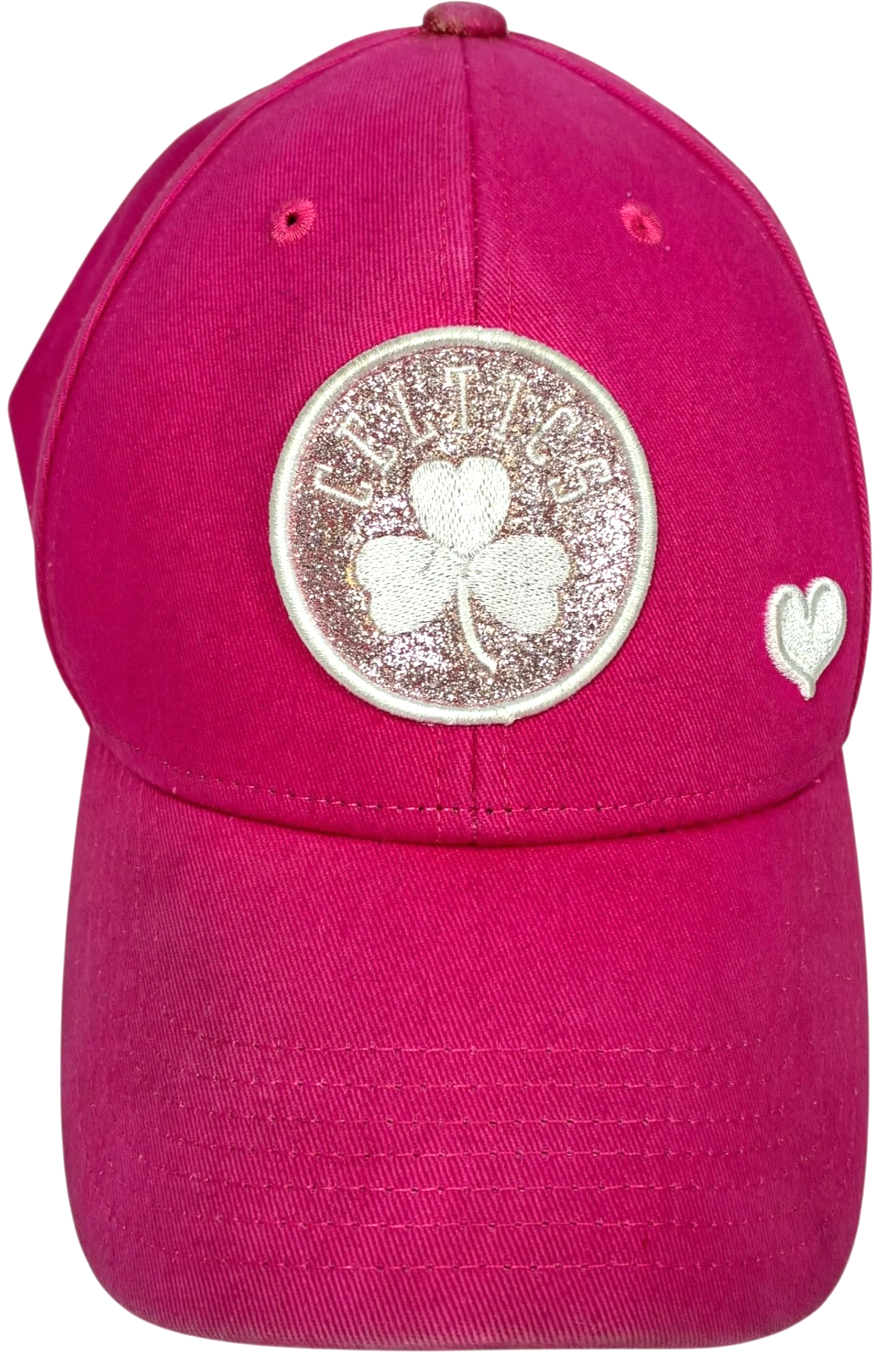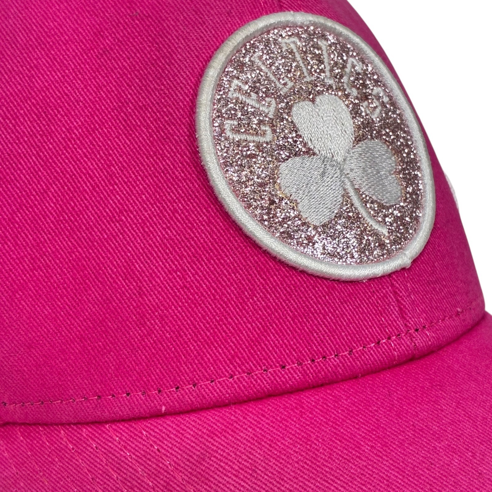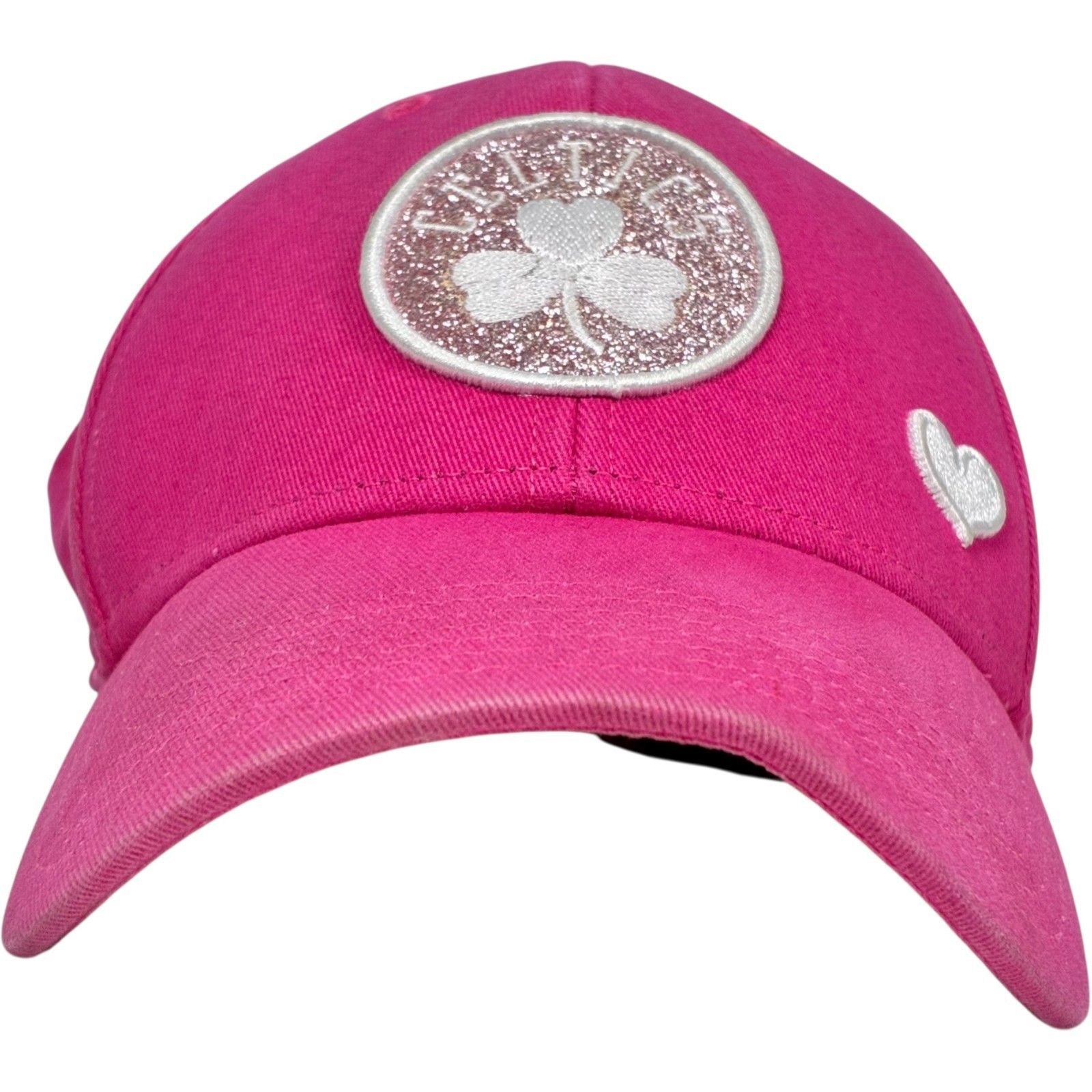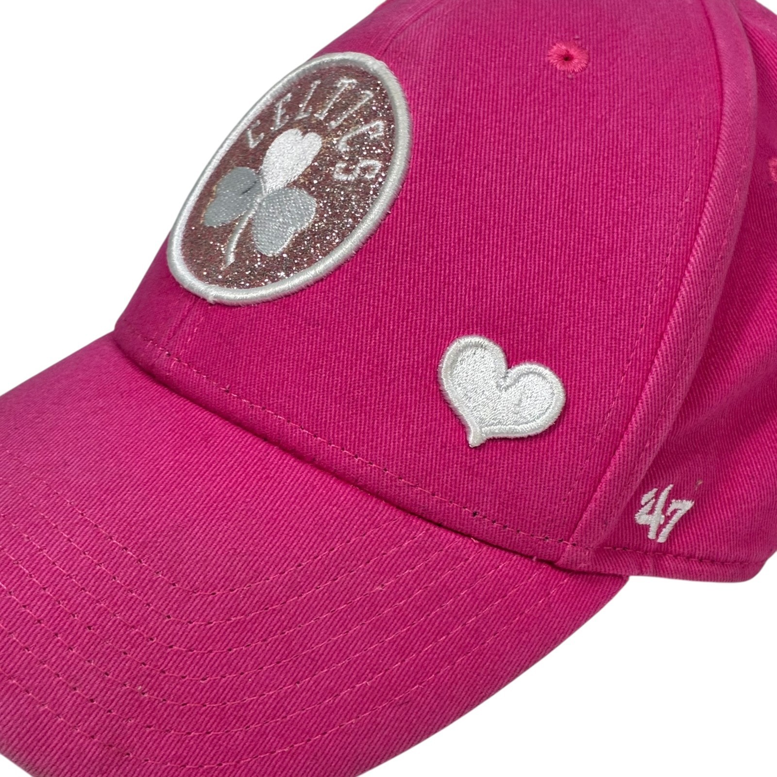 Boston Celtics Glittery Shamrock Pink MVP 47 Brand Girls Hook Loop Hat Cap