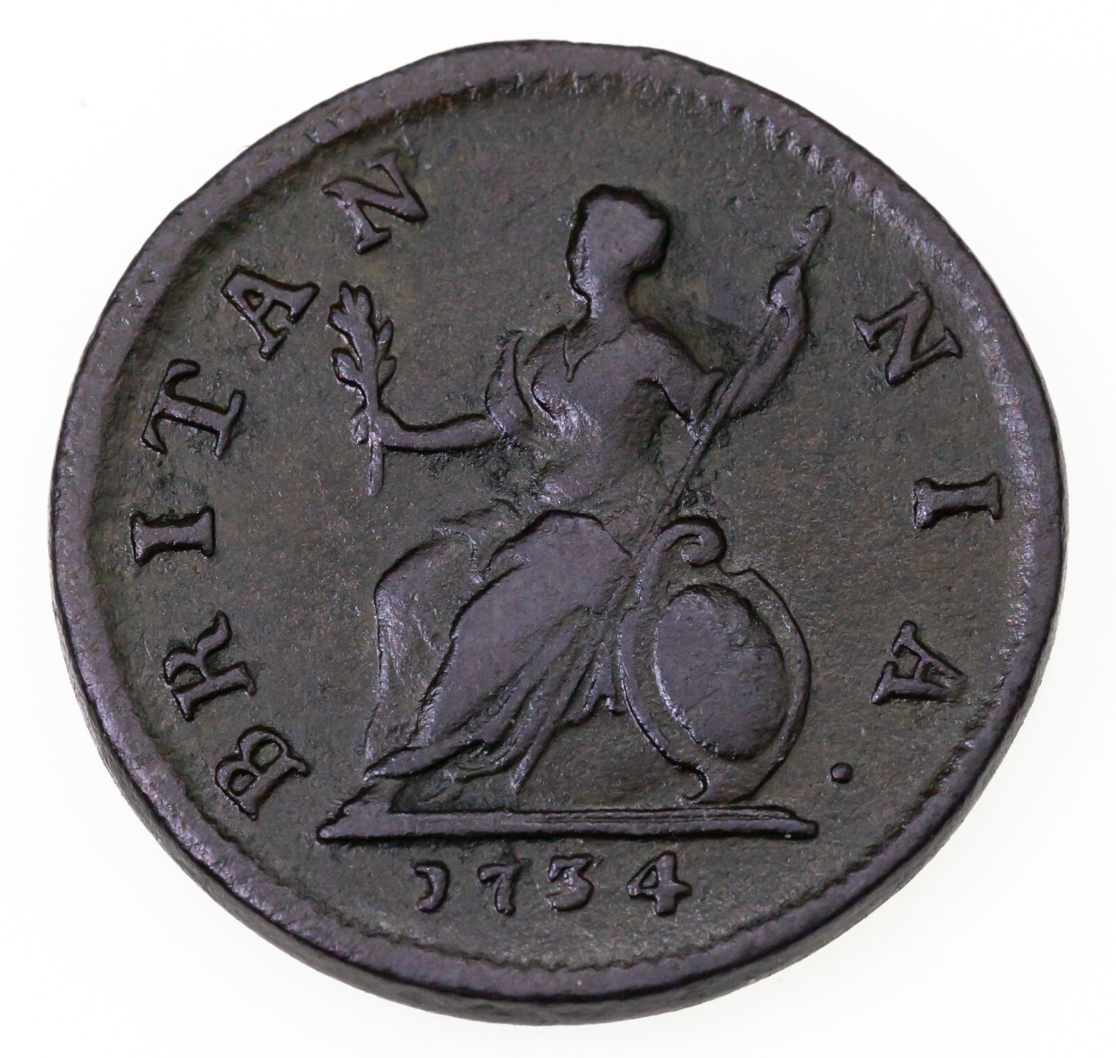 1734 Großbritannien Farthing -Münze in sehr feinem Zustand KM # 572