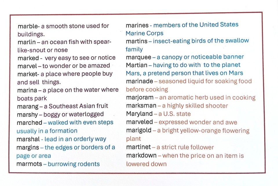 1. Each card has the same 3 letter word combination for all 24 words on a card