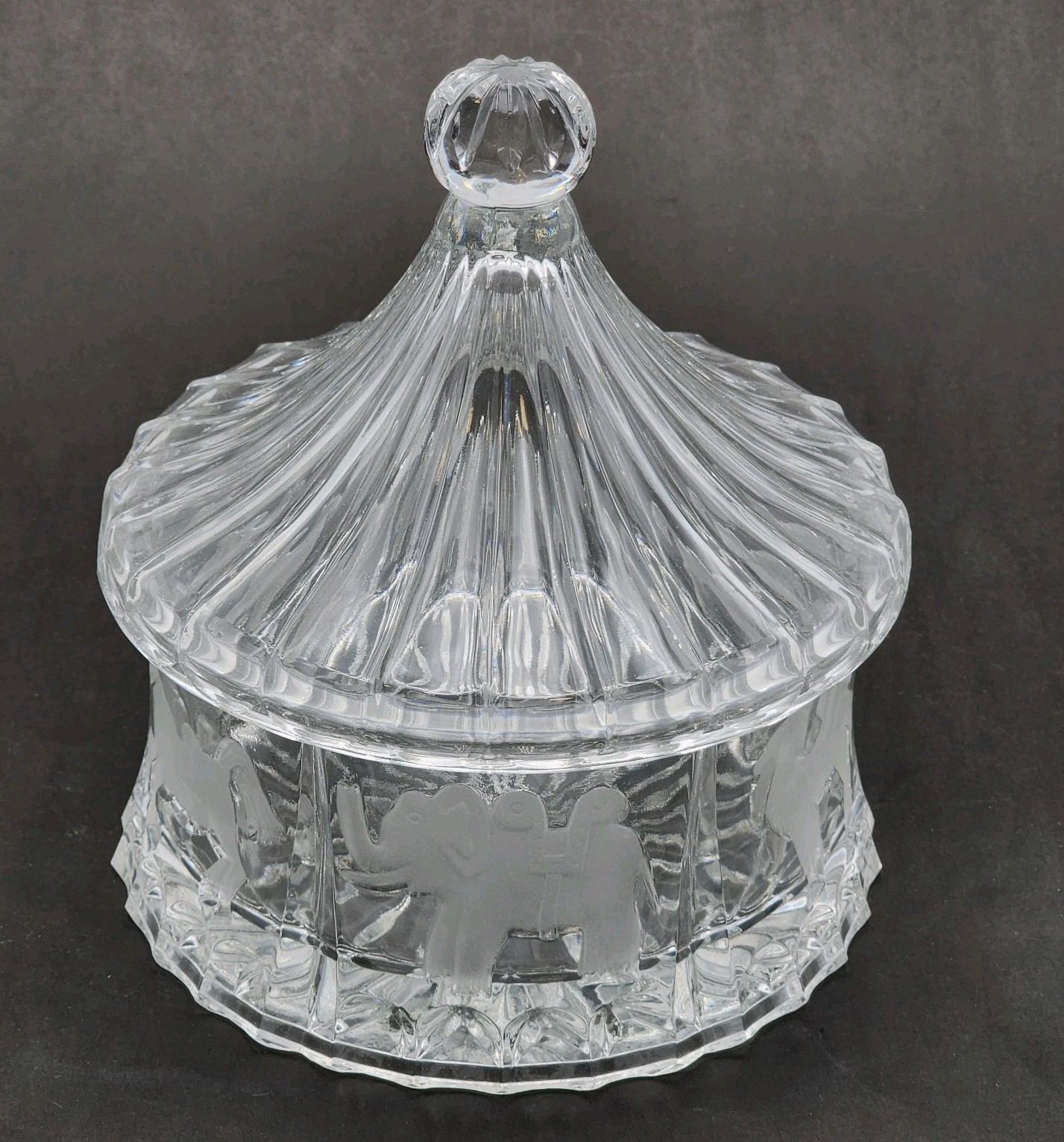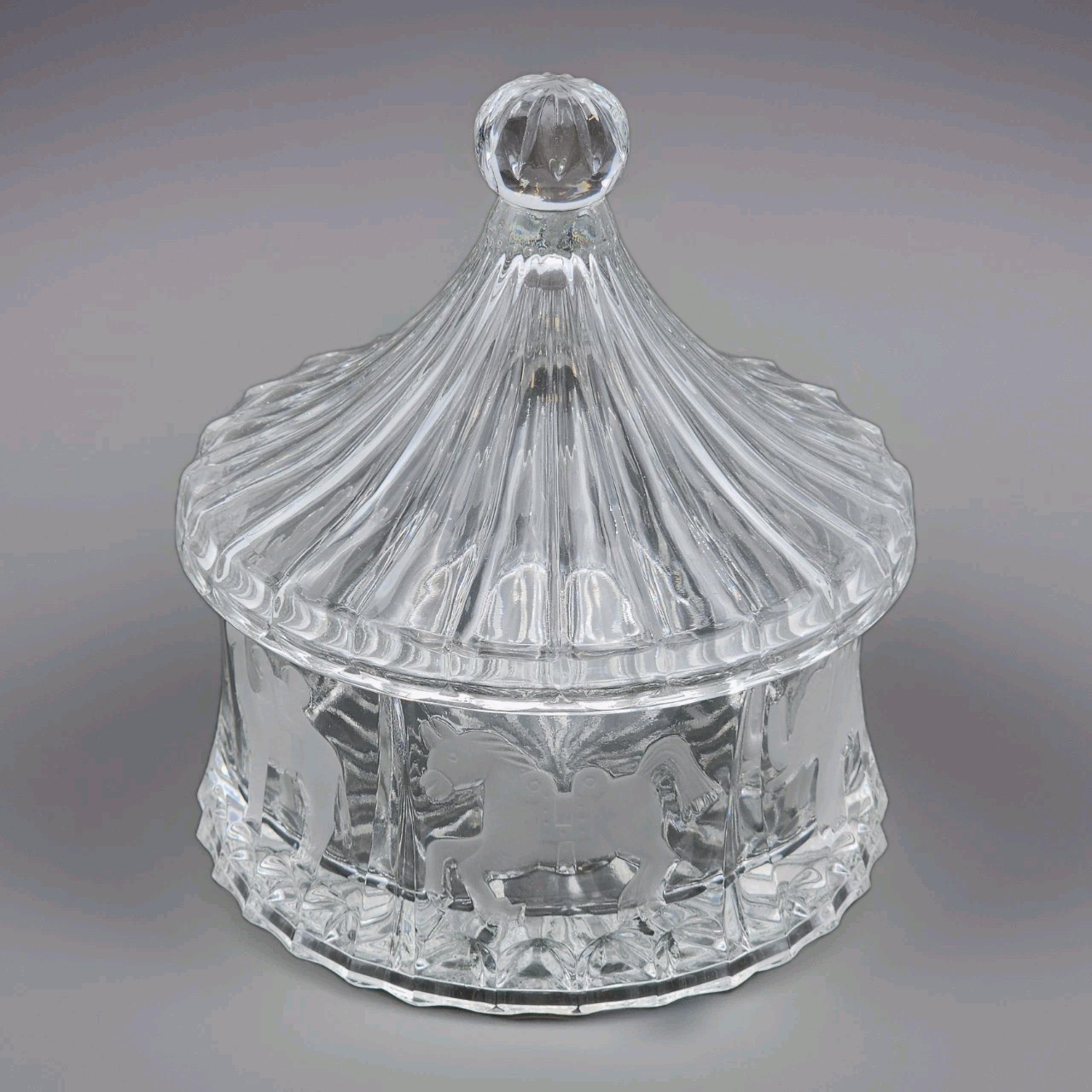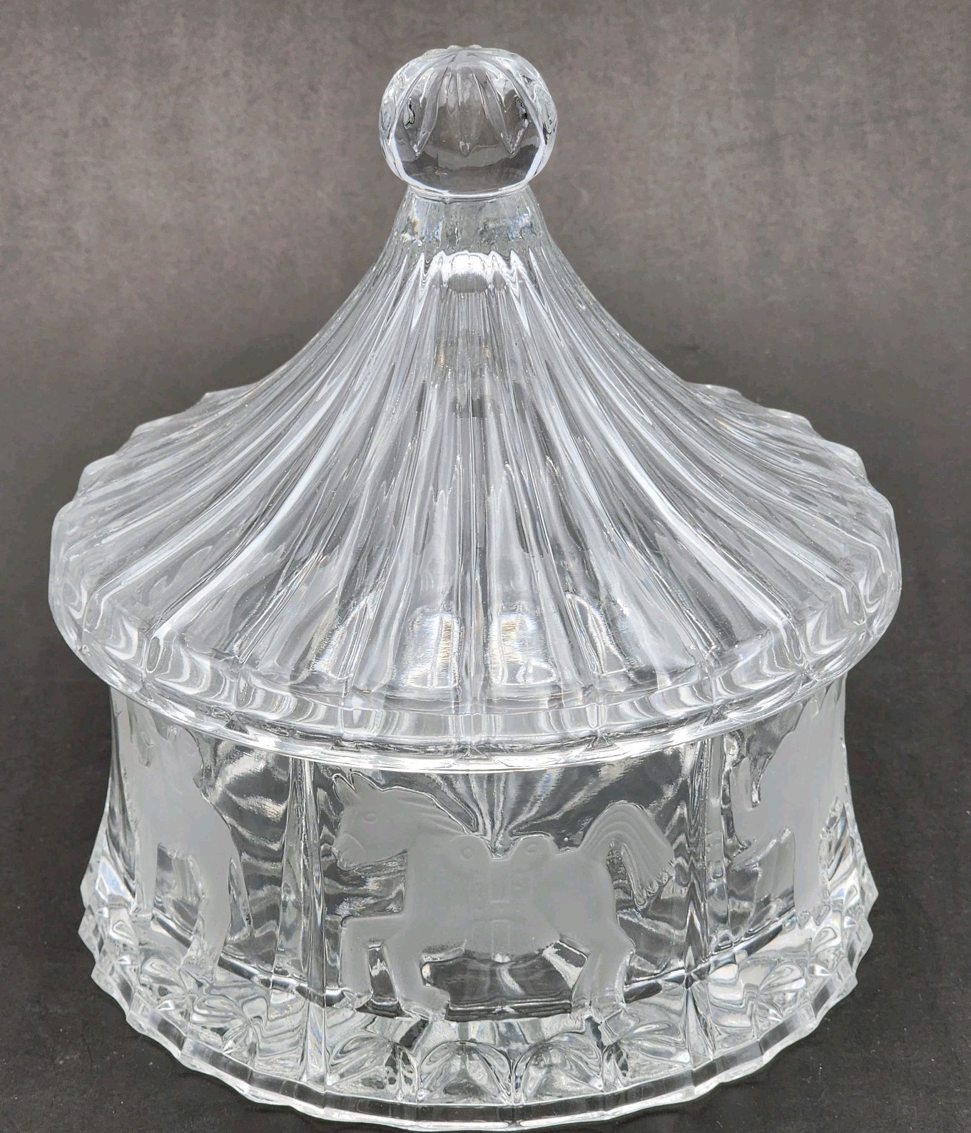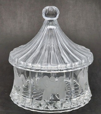 Godinger Crystal Legends Carousel Candy Dish 24% Lead Crystal Jar w/ Lid Boxed