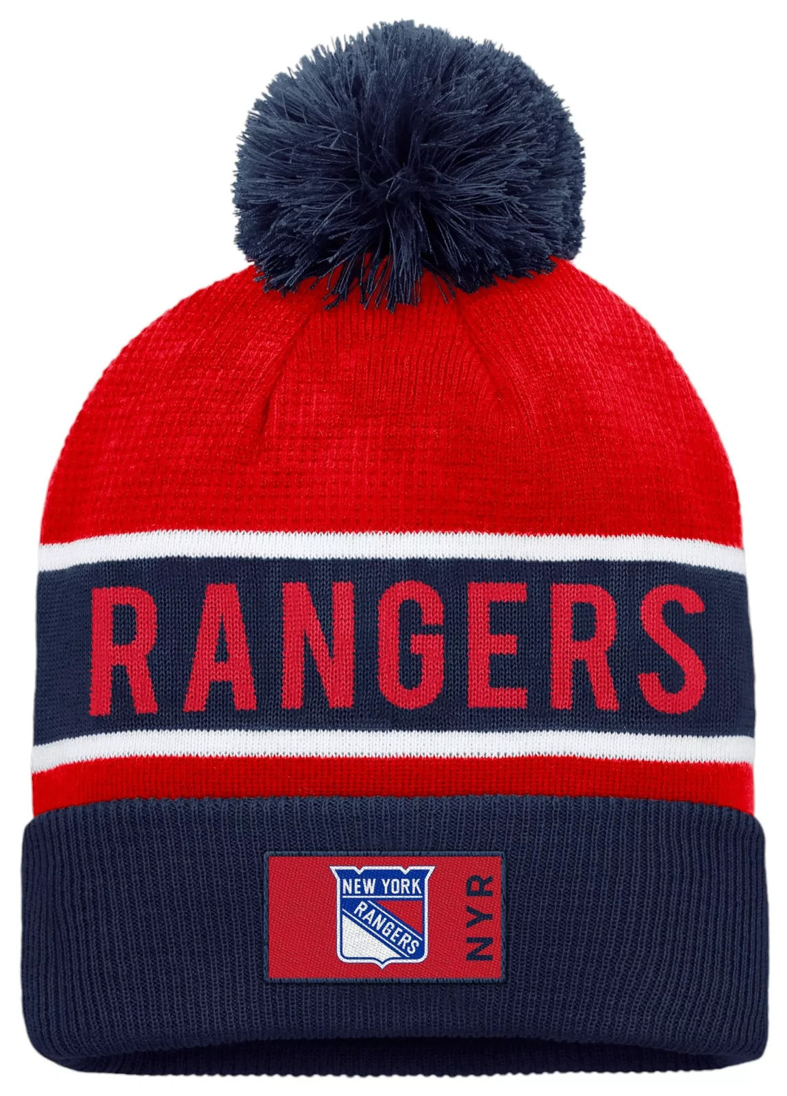 NHL Adult New York Rangers Authentic Pro Rink Red Pom Knit Beanie One Size NWOT
