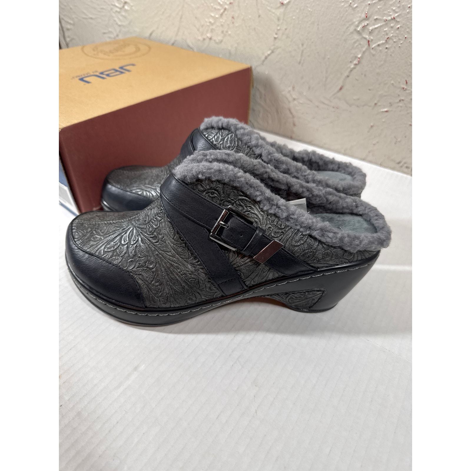 JBU by Jambu Sweden Black Memory Foam Flower Embossed Shoes Clogs Slides Size 10