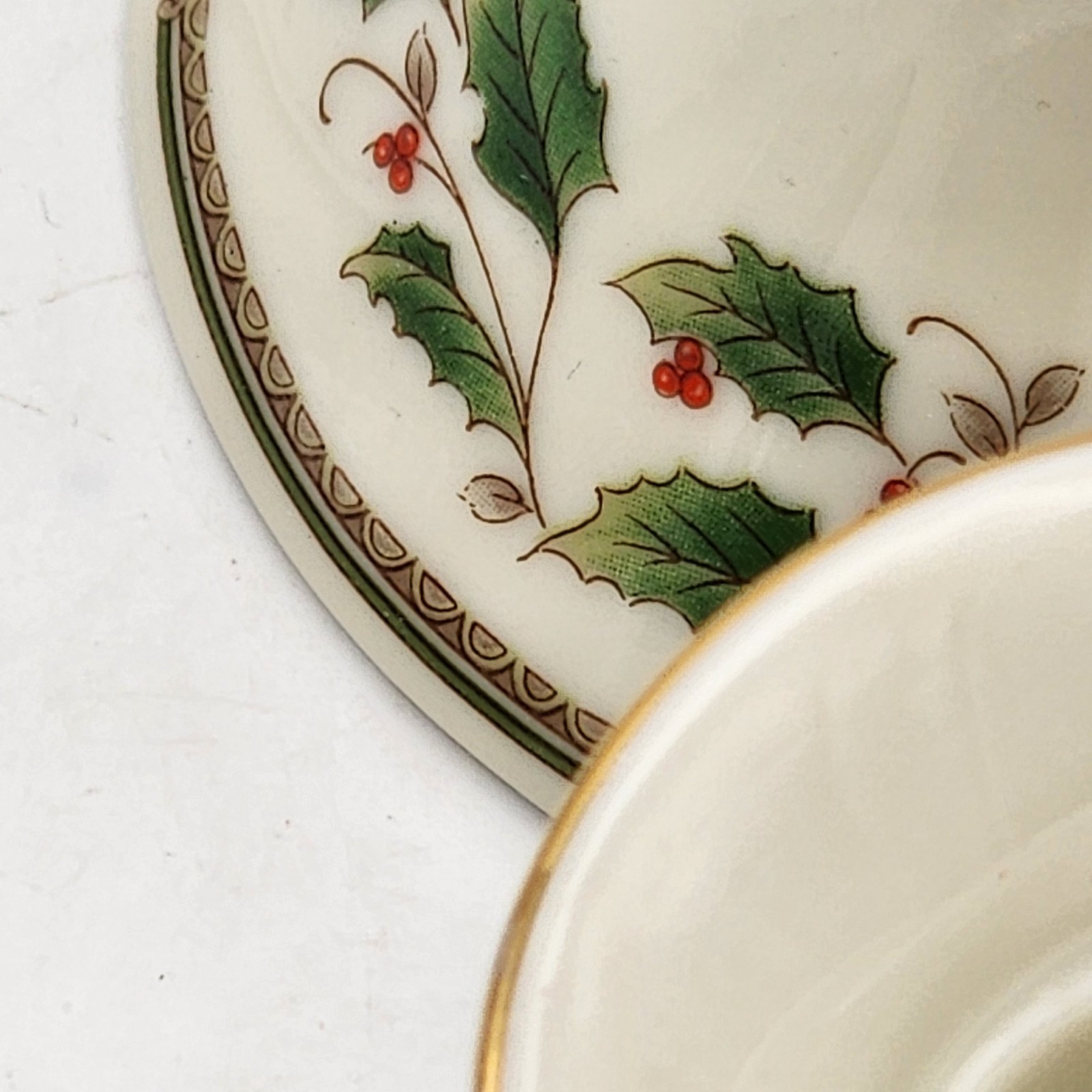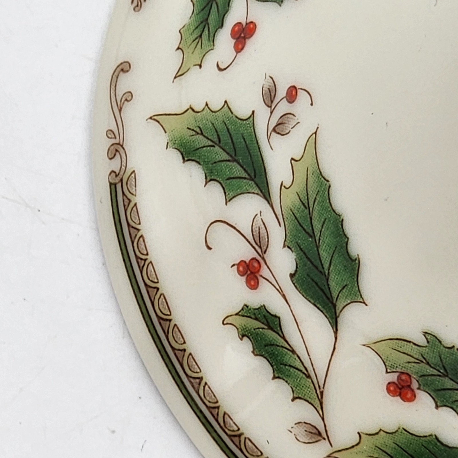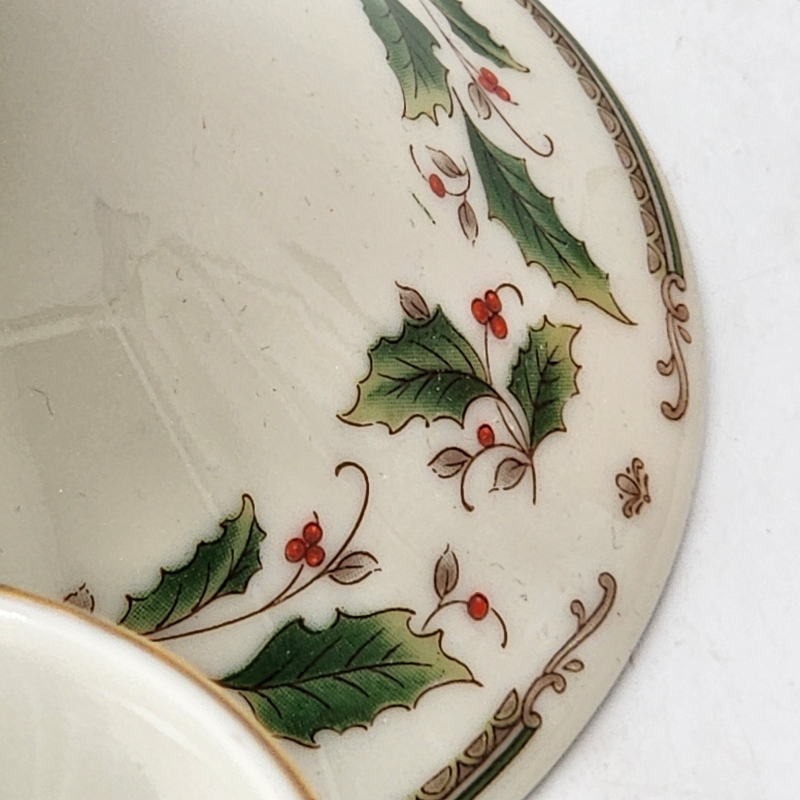 Royal Limited Holly Holiday Pair 4" Candle Holders Porcelain Gold Trim in Box