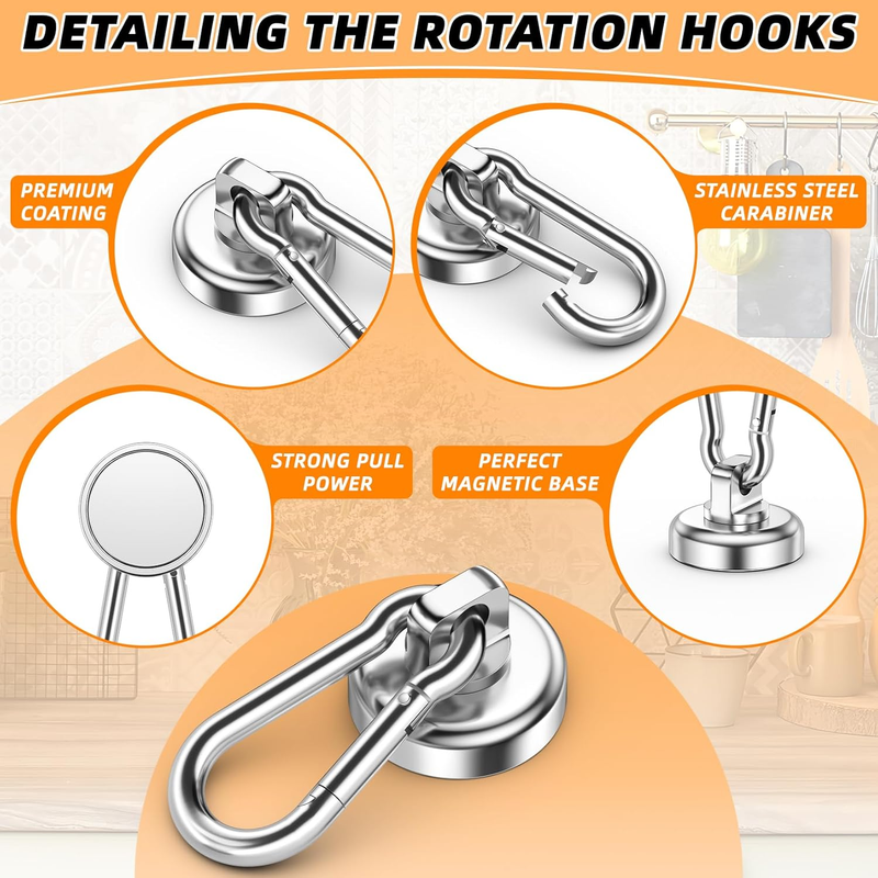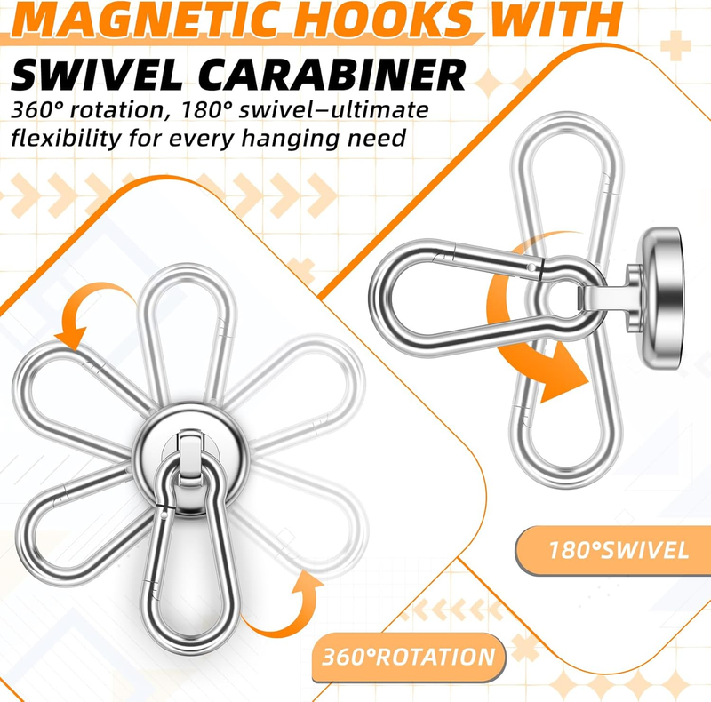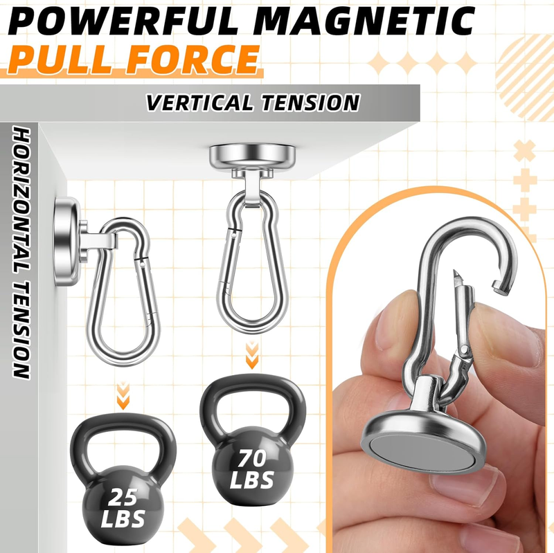 6 Pack Magnetic Hooks with Swivel Carabiner, 70LBS Neodymium Magnet Hooks Heavy