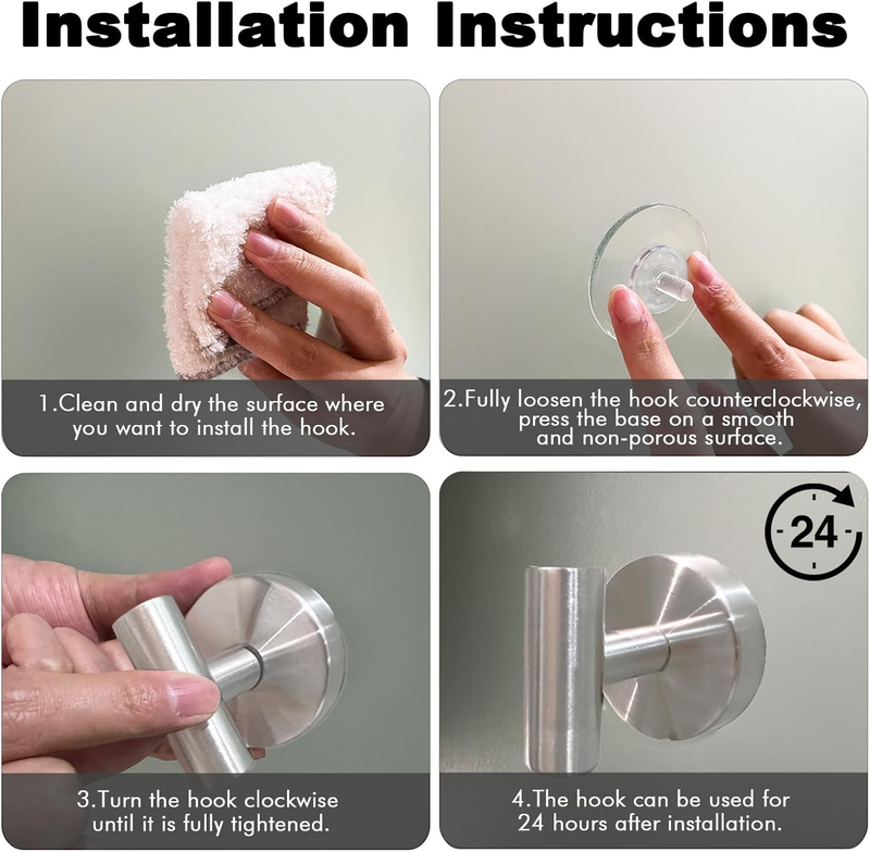 Suction Cup Shower Towel Hooks, Wall Mount Robe Holder, Heavy Duty No Drill Wall
