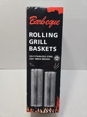 Grill Basket Acc 2 PCS Rolling Grill Baskets for Outdoor Barbecue Grill or Smoker