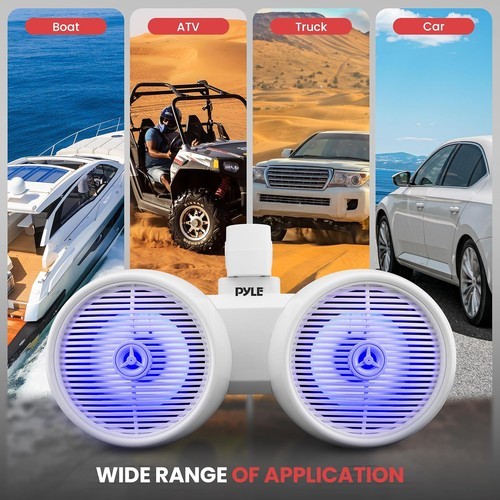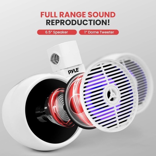 Introducing the Pyle 6.5'' Marine Speakers ? the ultimate audio solution designed for music lovers who demand excellence on the water. Turn every boating adventure into a concert with these boat speakers, engineered to deliver superior sound quality, durability, and style. Experience the power of our marine speakers, featuring Bluetooth Wireless Music Streaming, allowing you to effortlessly connect with all of today?s latest devices, including smartphones, tablets, and laptops. With a wireless range of over 30 feet, control your music from anywhere on your boat with ease. The 6.5 marine speakers are built with a Long Excursion Woofer and a 1? Titanium Dome Tweeter, offering full-range sound reproduction with large diameter sound projection. Constructed with marine-grade materials, these boat speakers are not only water-resistant but also corrosion and stain-resistant, ensuring longevity and reliability in all marine environments. Designed with heavy-duty ABS construction, these waterproof speakers for boats are built to withstand the harshest conditions. The bullet-style speaker design and protective plastic grill cover add a sleek, modern touch to your vessel. With a marine grade IP rating of IP-44, these boat speakers are engineered to perform in challenging environments. The dual 2-way mini box speaker system includes a built-in crossover network, ensuring seamless sound blending for a richer, more immersive audio experience. The Pyle marine speakers come with a convenient mounting bracket and hardware, fitting support bars, tubing, frames, and roll-cages up to 2.35'' in diameter, making installation a breeze. With a max power output of 2 x 200 Watts and an RMS power output of 2 x 100 Watts, these marine 6.5 speakers deliver robust, dynamic sound that will make every boat trip unforgettable. Choose Pyle marine speakers and transform your aquatic adventures with Pyle, there?s no limit to the musical possibilities.