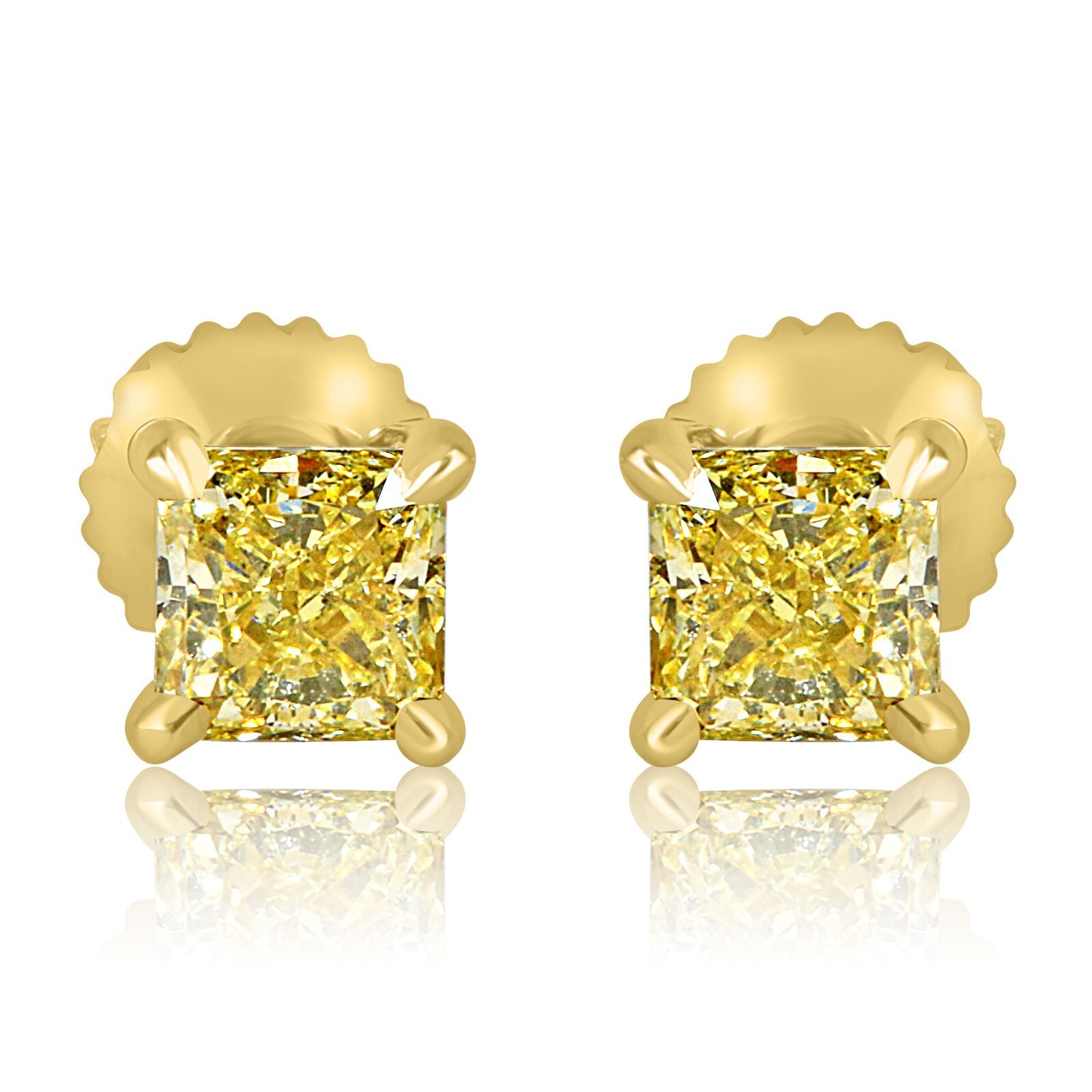 GIA 1.42 TCW Radiante Natural Fancy Fancy Giallo Orecchini di diamante Gold 18K
