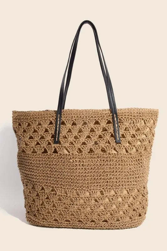 The Faux Leather Handle Knitted Tote Bag combines the classic elegance of faux leather with the cozy charm of knitted details. This tote bag features faux leather handles for a sleek and sophisticated touch, contrasting beautifully with the textured knitted body. The knitted construction adds a casual and relaxed vibe to the bag, making it a versatile accessory for both everyday wear and special occasions. With its spacious interior and stylish design, the Faux Leather Handle Knitted Tote Bag is the perfect blend of fashion and functionality.