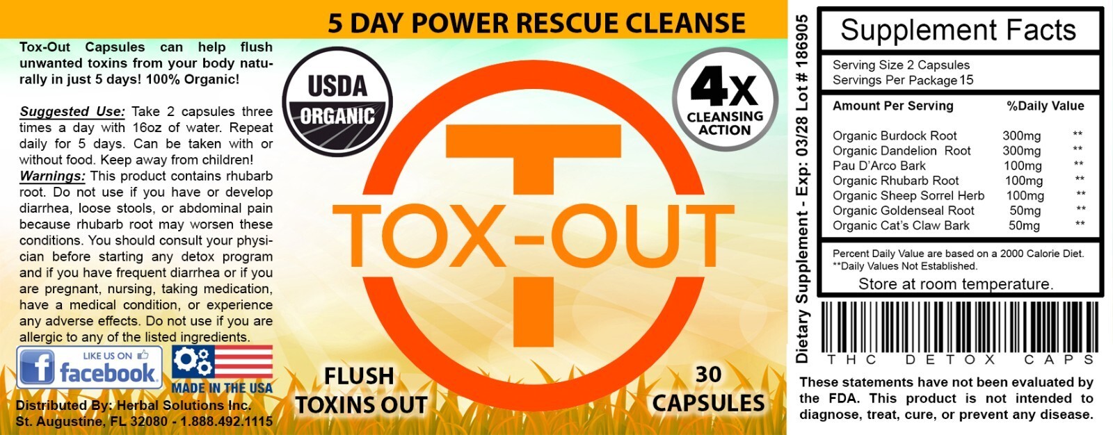 With over 10 years of experience, Herbal Solutions LLC, based in St. Augustine, FL, has been dedicated to creating high-quality detox products. Tox-Out has helped thousands of customers achieve their detox goals using the power of nature.