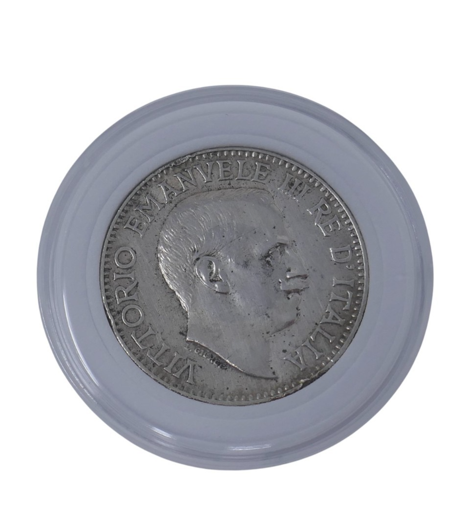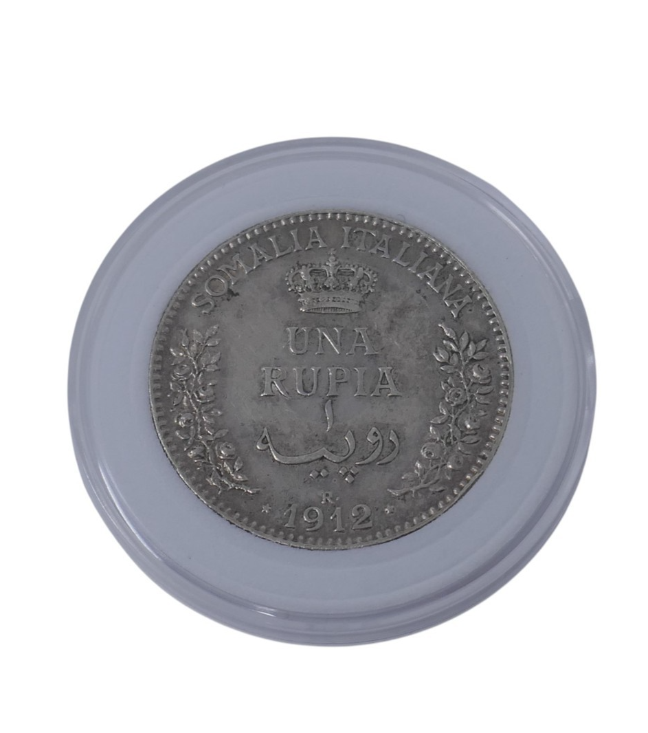 This is an Italian Somaliland 1912 silver coin. This coin has a fineness of 0.917 and weighs 11.6 grams. The coin features the portrait of Victor Emmanuel III, the last King of Italy, and is a piece of history from Italian colonial rule in Somalia.
