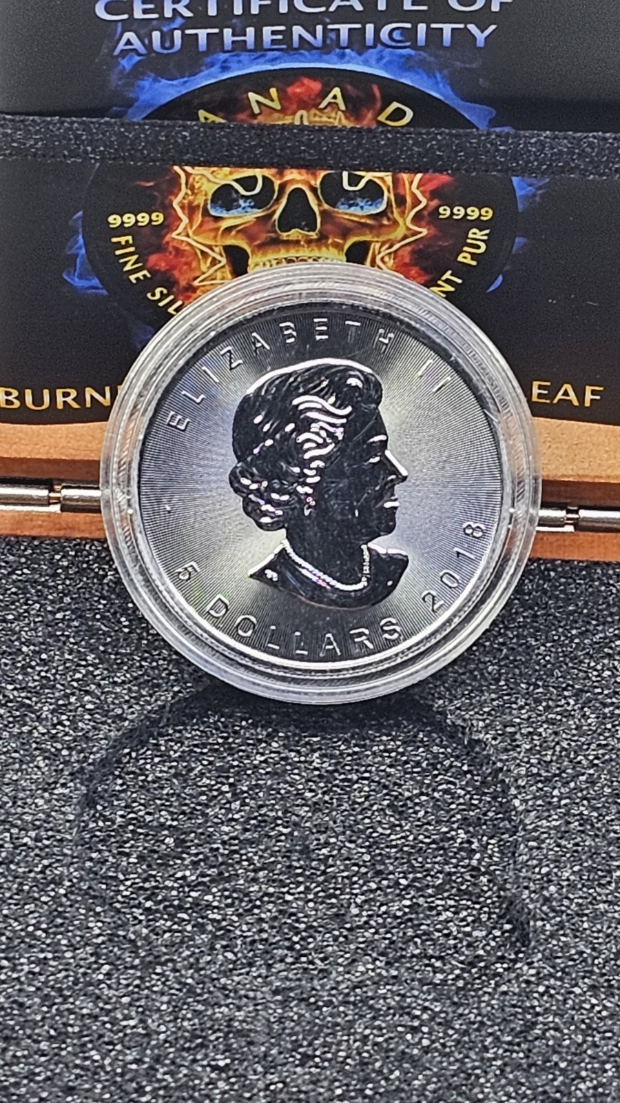 2018 Canadian Maple Leaf 1 oz Silver Burning Skull Limited #250/500 + COA + Box