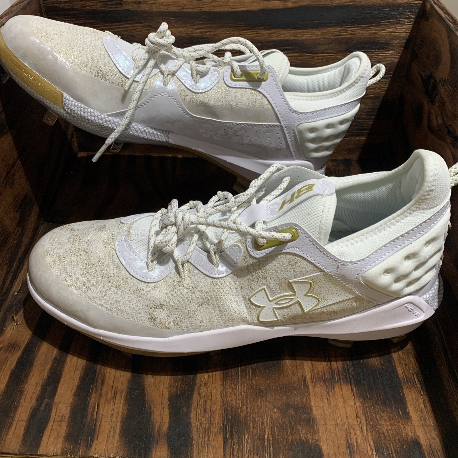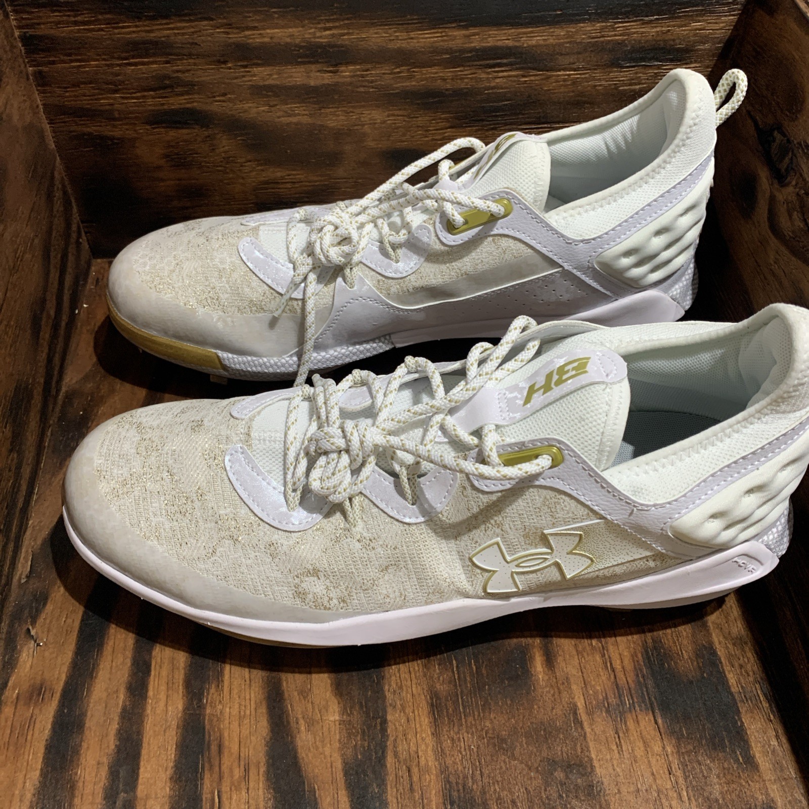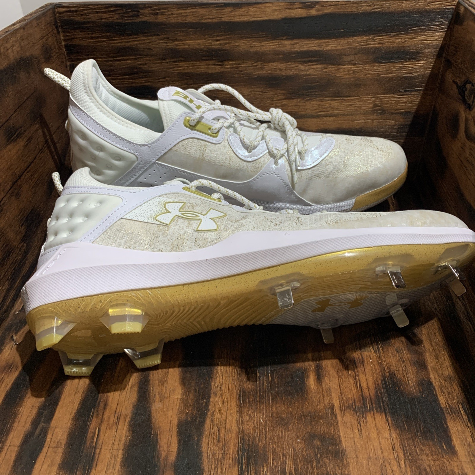 Under Armour Harper 8 Low ST Men's 13.5 Metal Baseball Cleats White/Gold 3026588