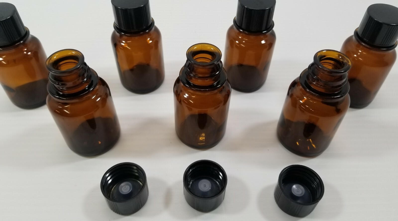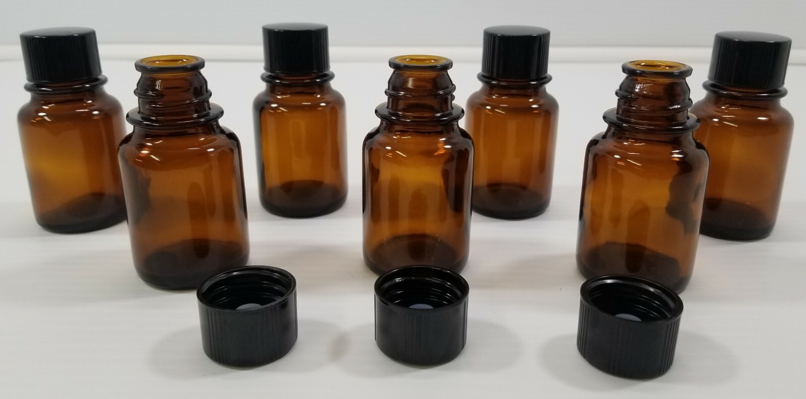 LL) Lot 7 Amber 2oz Empty Bottles Poly Seal Screw Caps Berk Company Apothecary