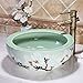Hand Painted Glaze Pea Green Round Art Basin, Plum Blossom Ceramic Countertop Ba