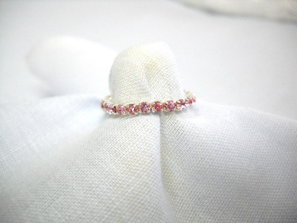 NEW DAZZLING LIGHT PASTEL PINK AUSTRIAN CRYSTAL STRETCH TOE RING FOOT JEWELRY