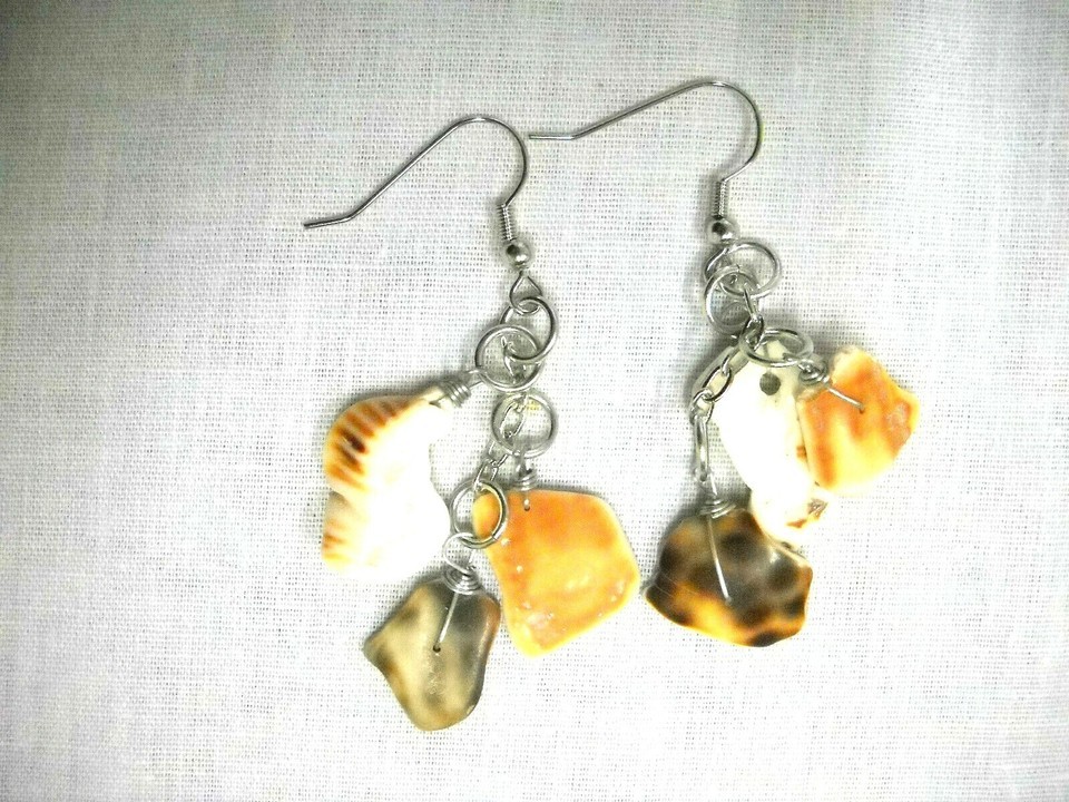 COLOR SEASHELL PIECES CLUSTER WIRE BAIL ON CHAIN BEACH VACATION EARRINGS