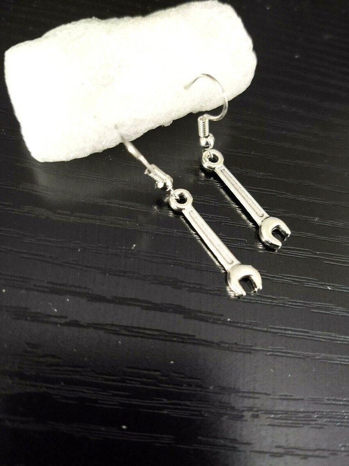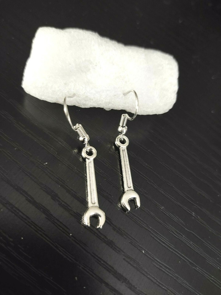 GREASE MONKEY SOCKET WRENCH CHARM DANGLING DROP HOOK WIRE EARRINGS