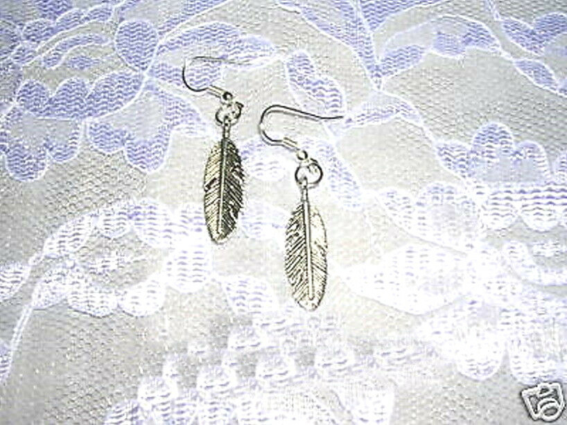 BIRD FEATHER EAGLE FEATHER ALLOY SILVER CHARMS METAL DROP EARRINGS JEWELRY