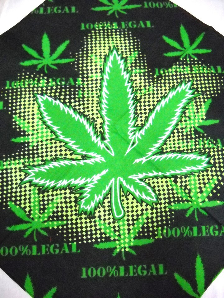 100% LEGAL GIANT POT LEAF BLACK & BRIGHT GREEN COLORS HEAD WRAP SCARF STATEMENT